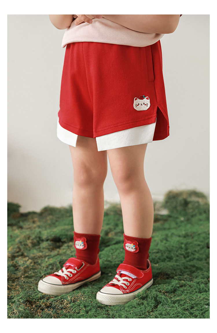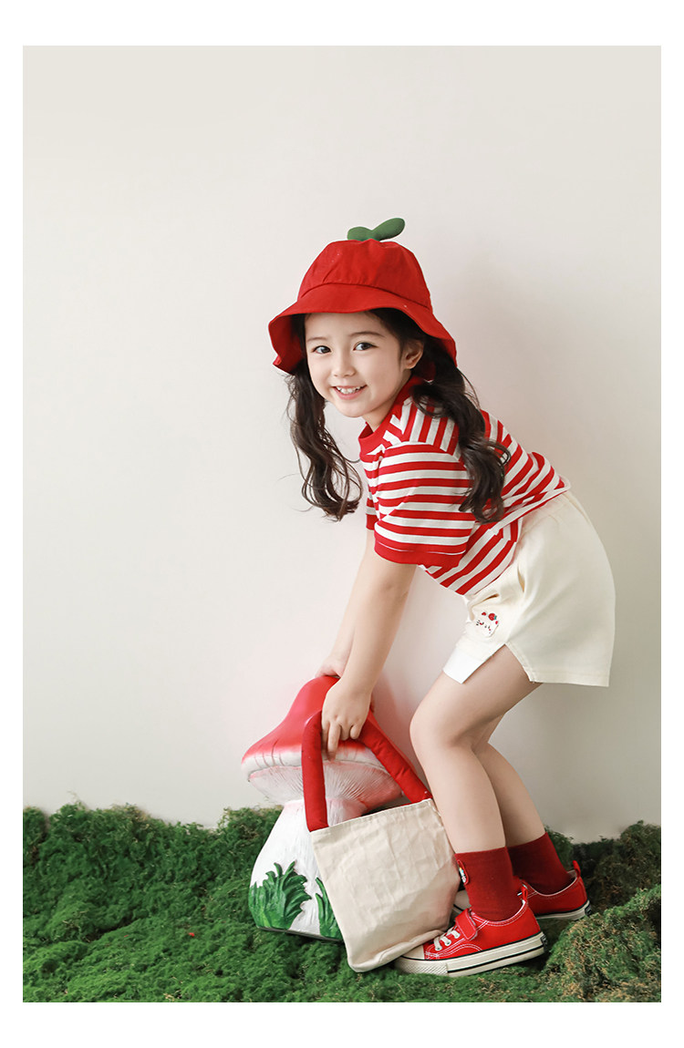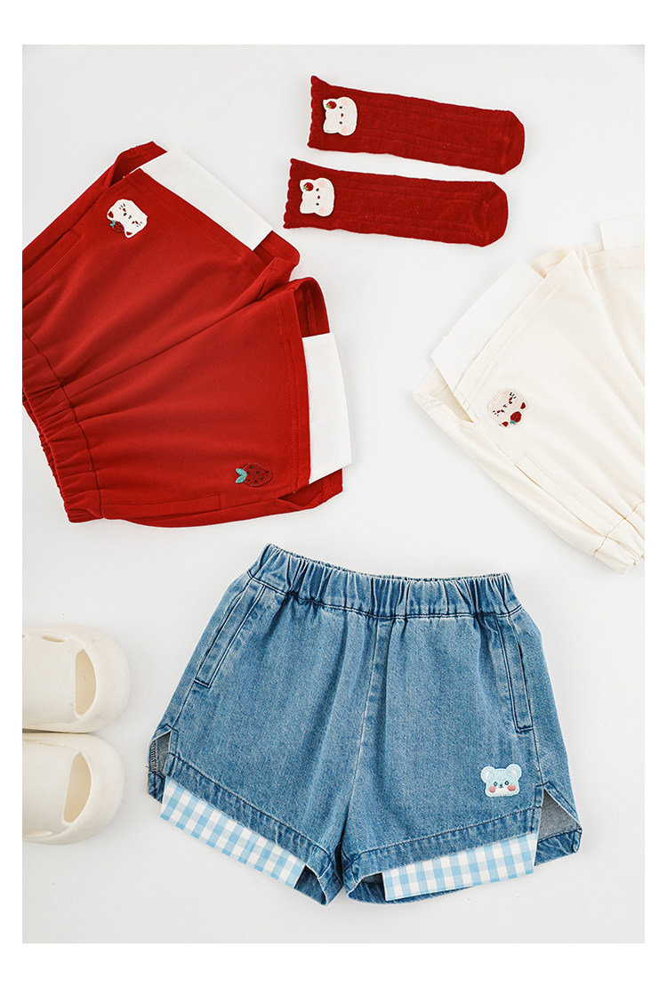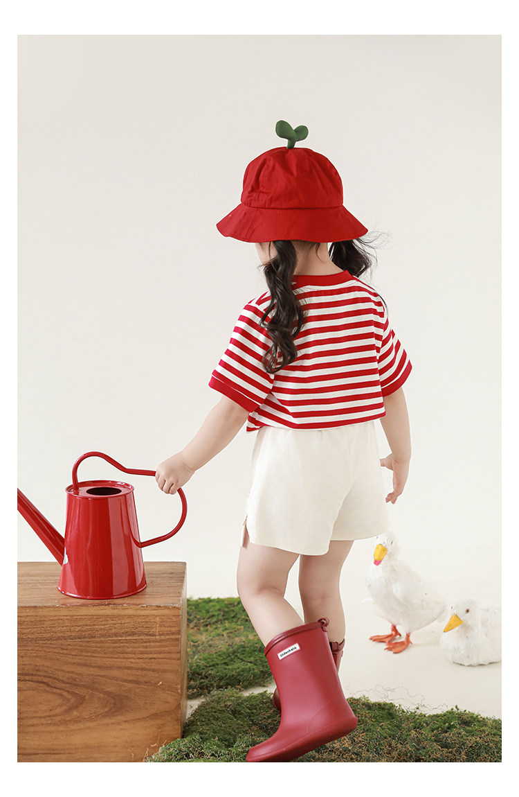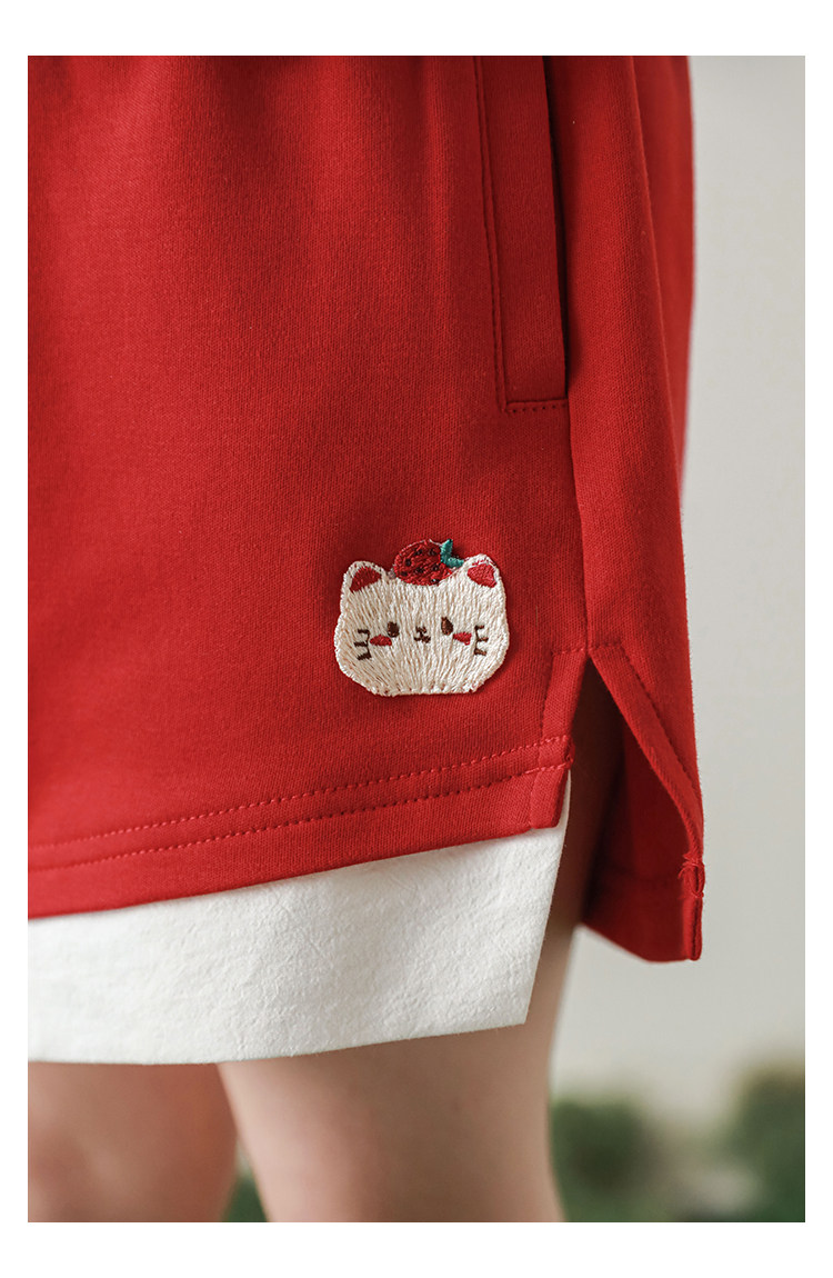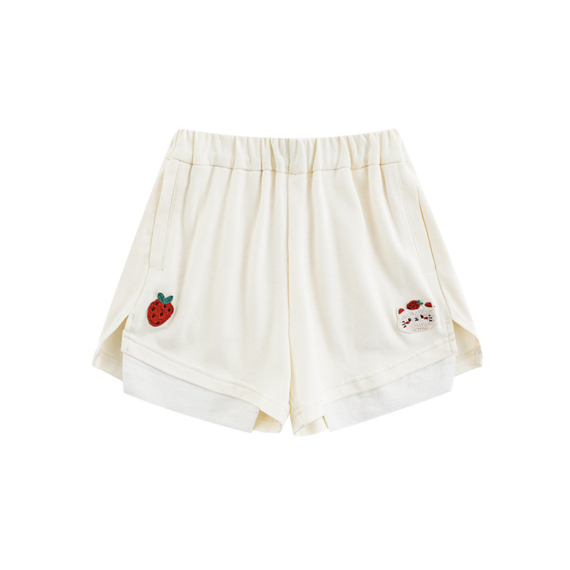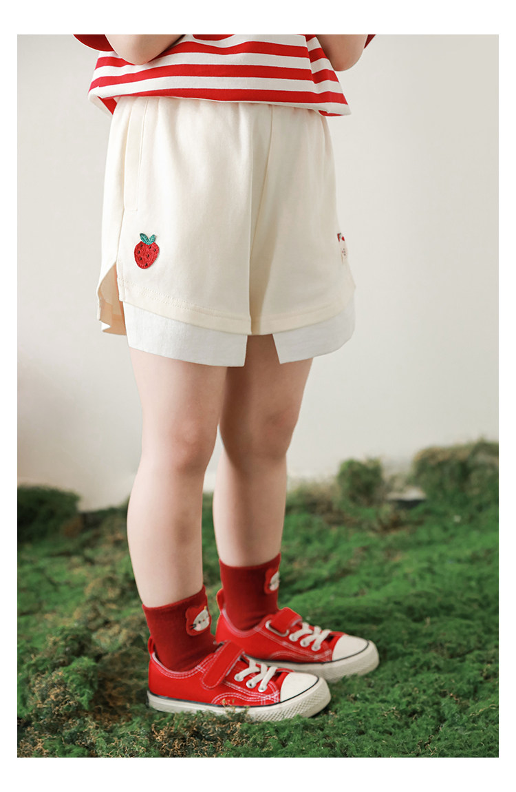 Wuri Boo 소녀 고양이 딸기 시리즈 2025 여름 시원한 느슨한 반팔 티셔츠 자수 반바지 세트