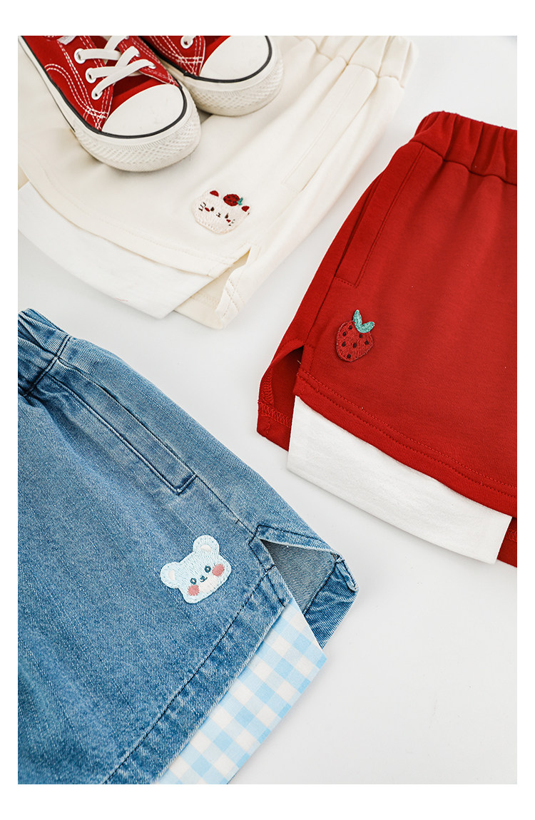 Wuri Boo 소녀 고양이 딸기 시리즈 2025 여름 시원한 느슨한 반팔 티셔츠 자수 반바지 세트스토어 가기