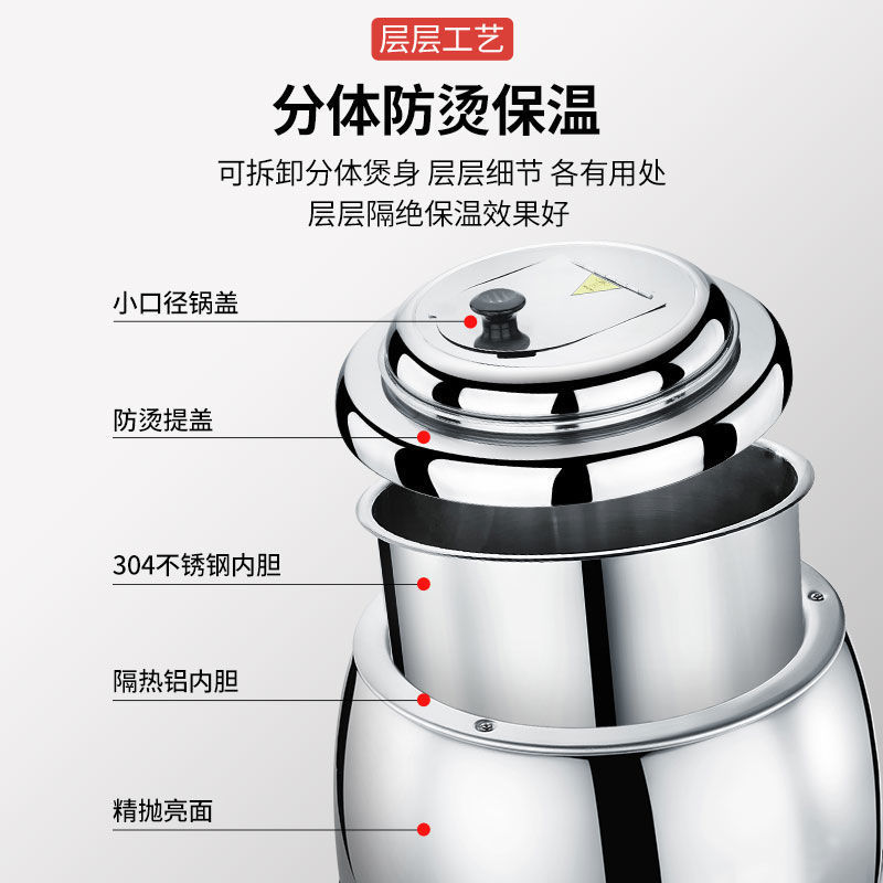 304 스테인레스 스틸 전자 따뜻한 수프 포트 10L 뷔페 열 보존 수프 냄비 호텔 열 보존 죽 냄비 상업용 전자 냄비