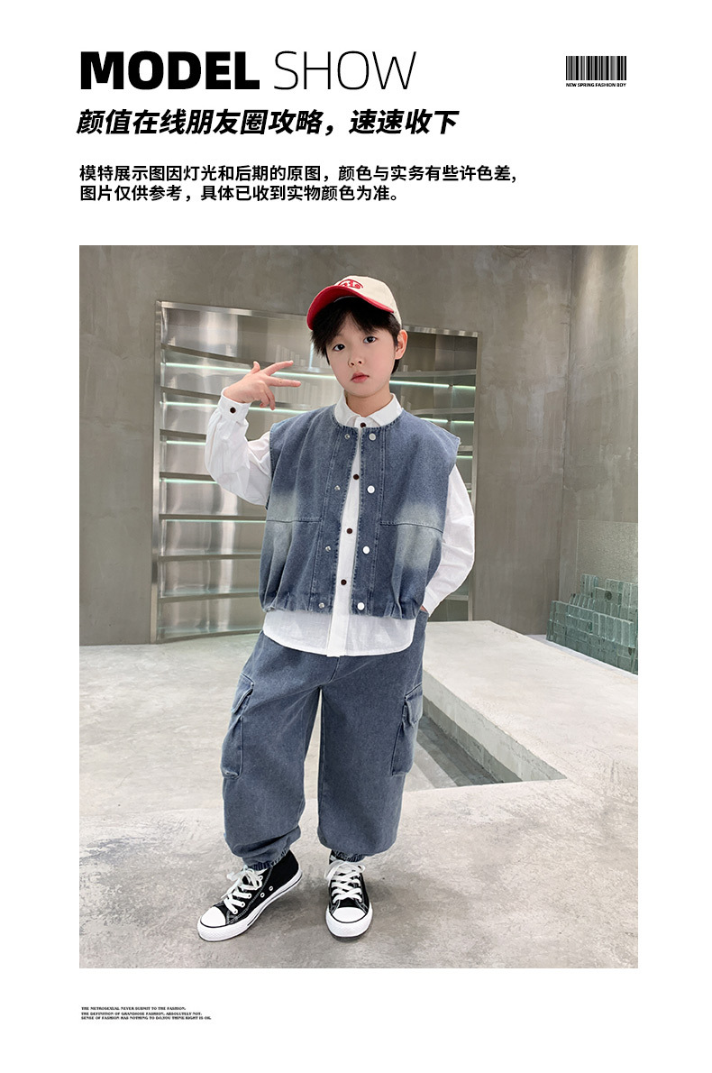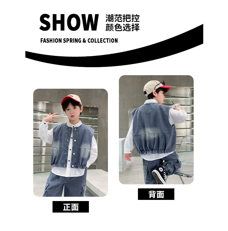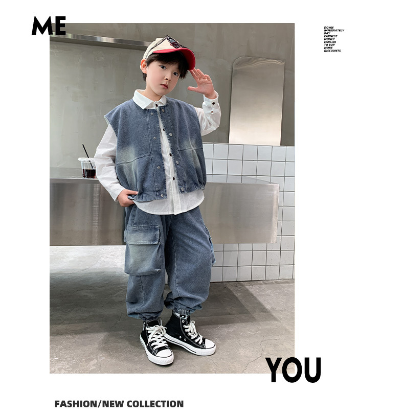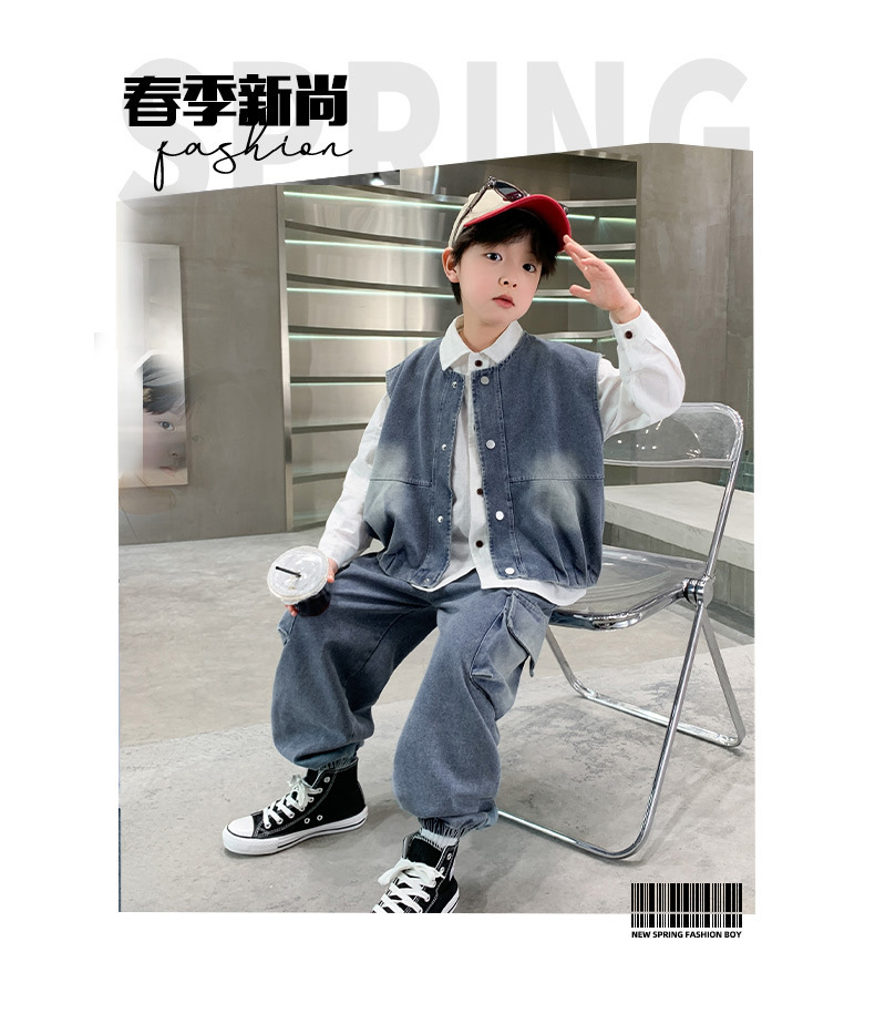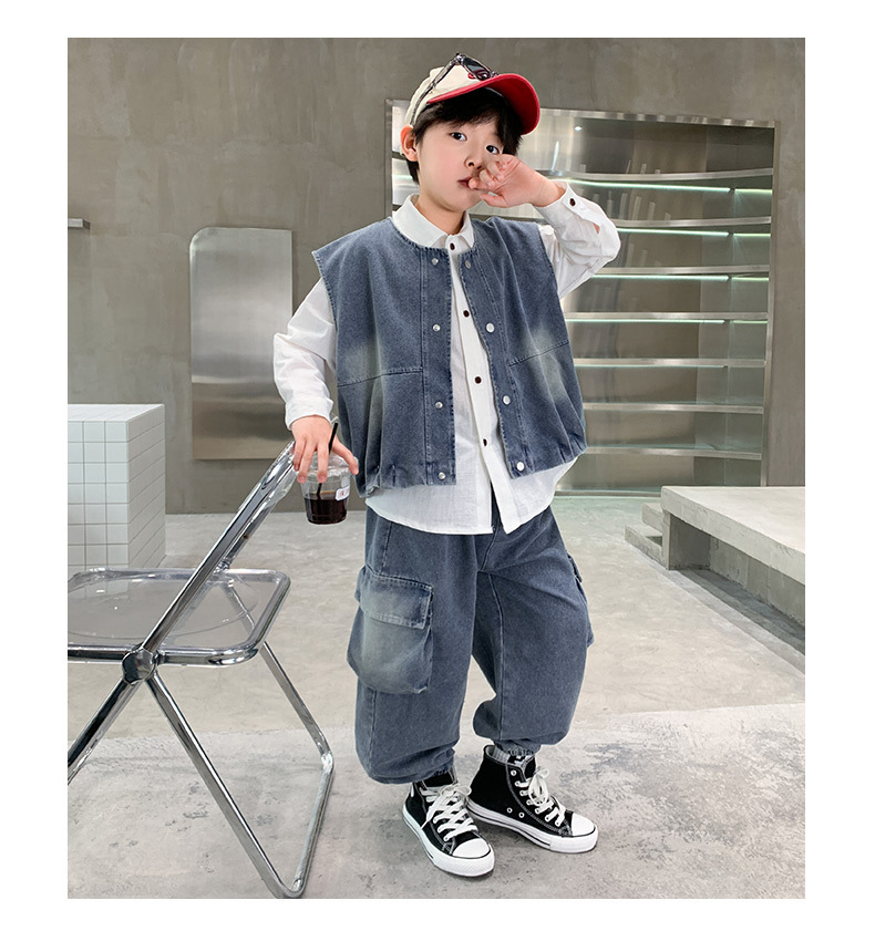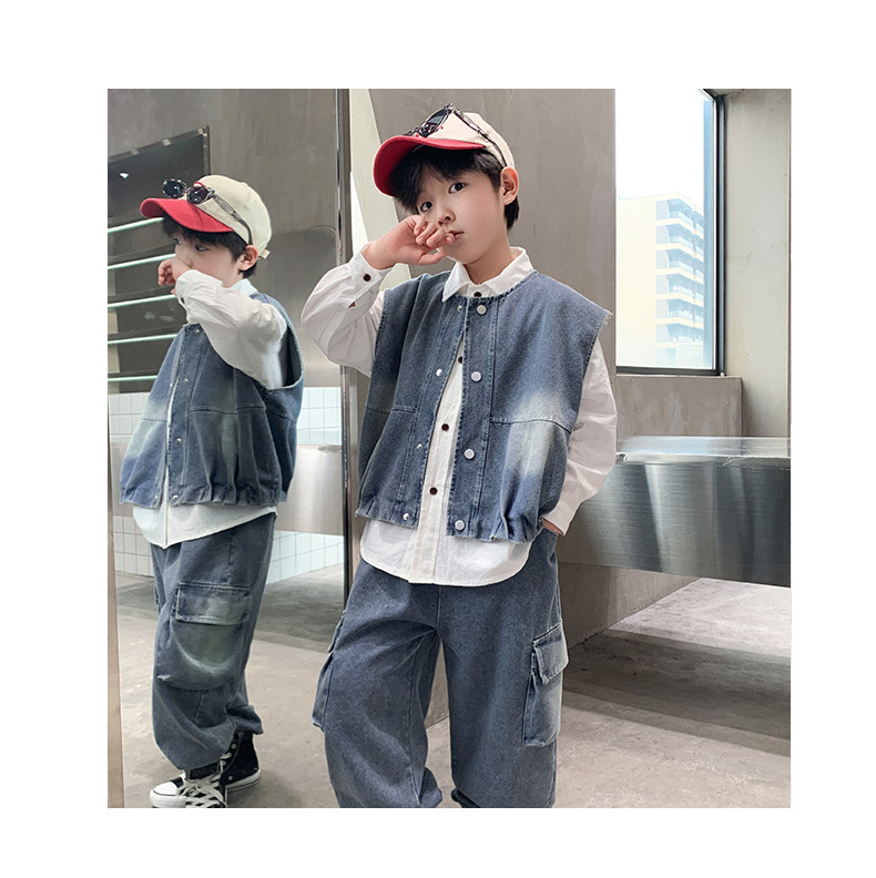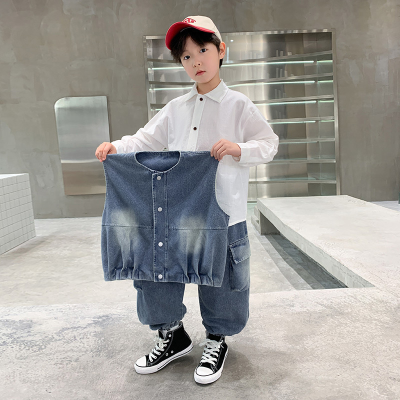 소년 데님 세트 봄과 가을 2025 새로운 어린이 봄웨어 소년 조끼 셔츠 크레인 바지 트렌디 쿨스토어 가기