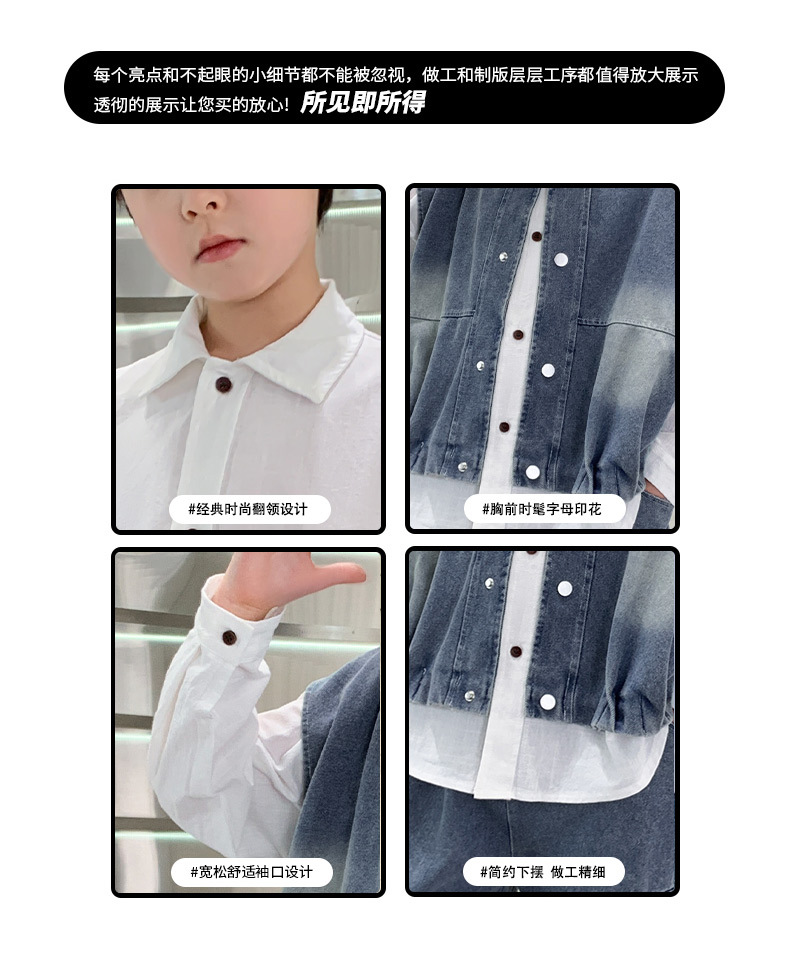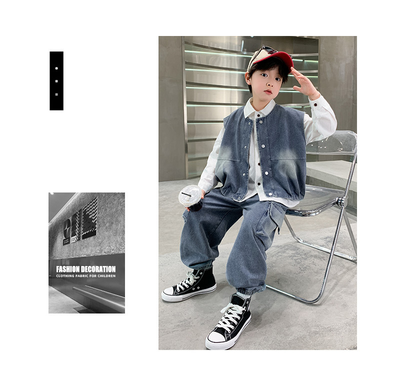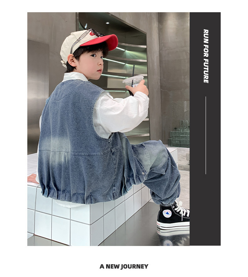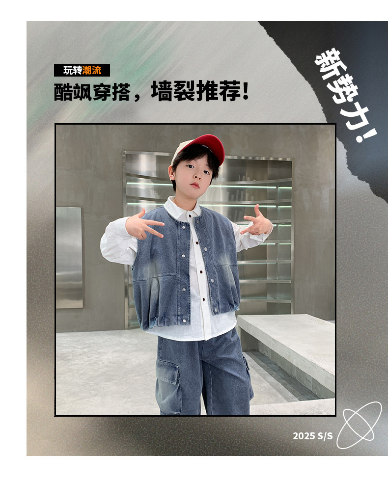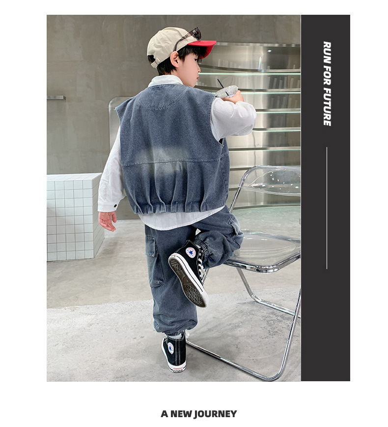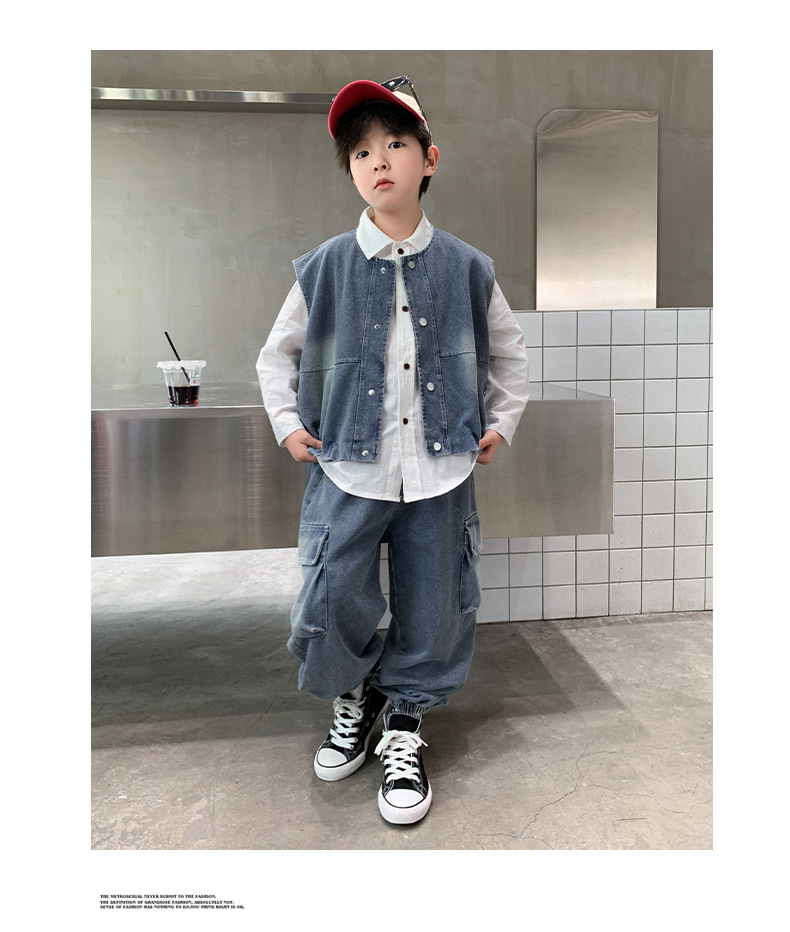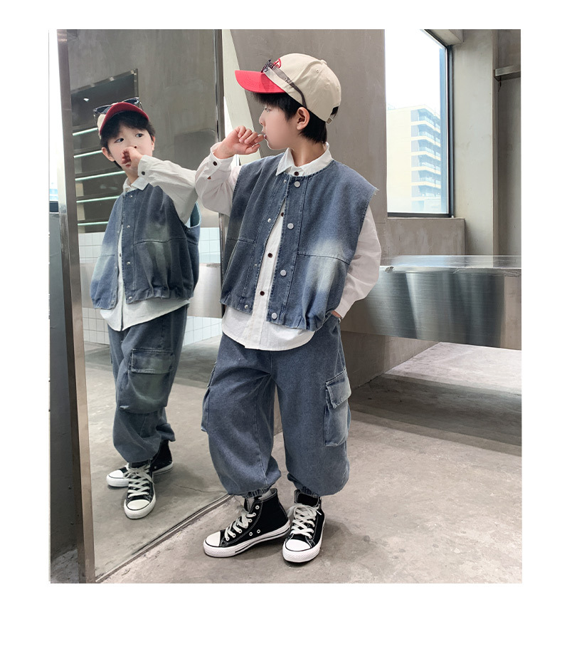 소년 데님 세트 봄과 가을 2025 새로운 어린이 봄웨어 소년 조끼 셔츠 크레인 바지 트렌디 쿨스토어 가기