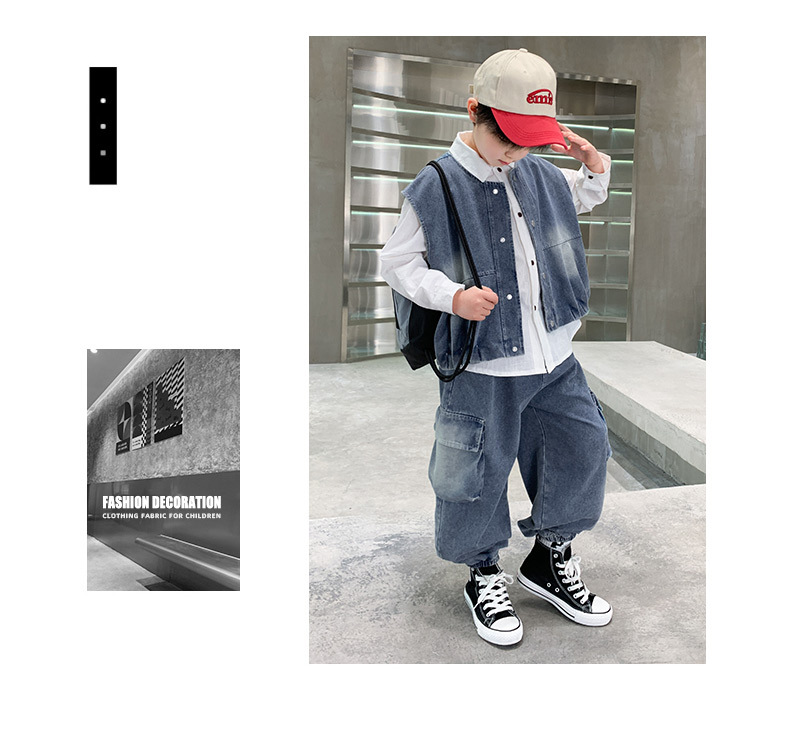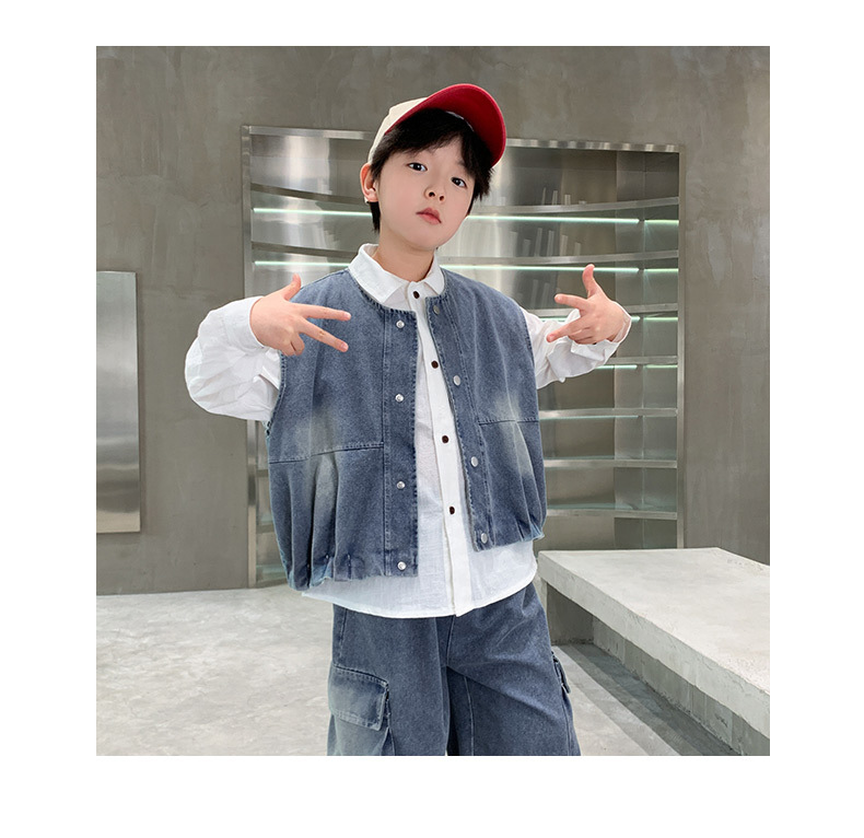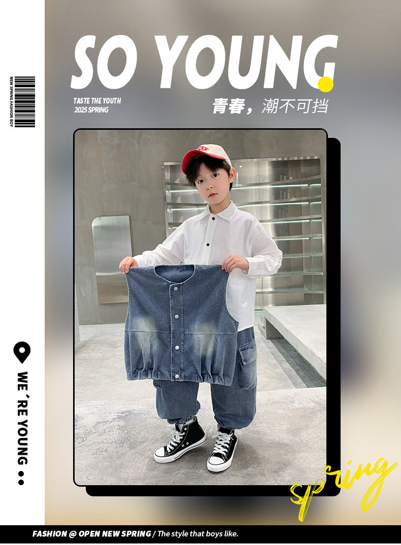 소년 데님 세트 봄과 가을 2025 새로운 어린이 봄웨어 소년 조끼 셔츠 크레인 바지 트렌디 쿨