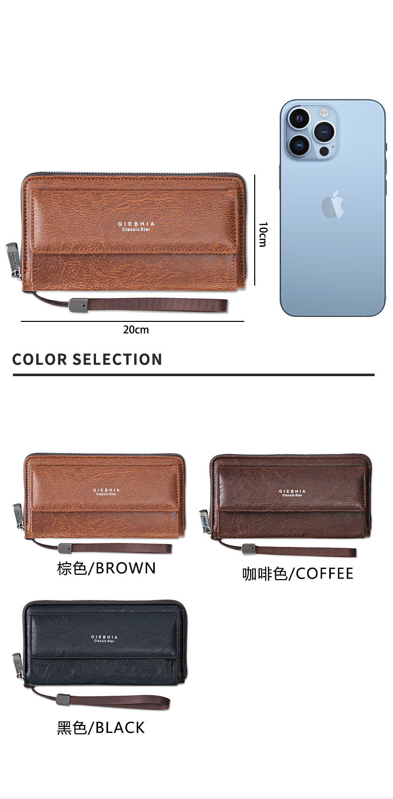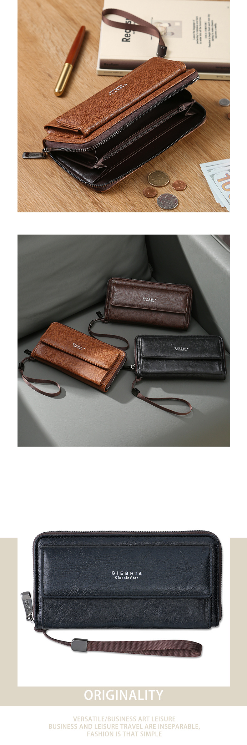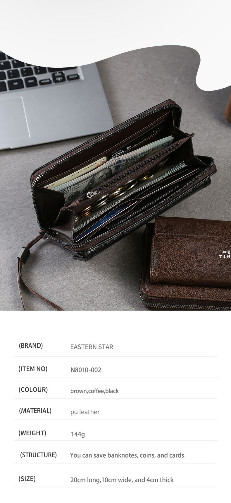 새로운 남성 지갑 PU 멀티 카드 캐주얼 긴 지갑 대용량 클러치 휴대 전화 동전 지갑