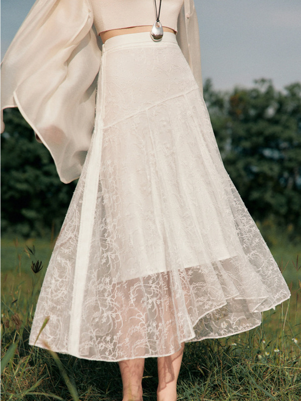 프랑스 스타일 우아한 레이스 디자인 센스 치마 여성 2025 봄 새로운 틈새 세련된 우아한 A 라인 스커트