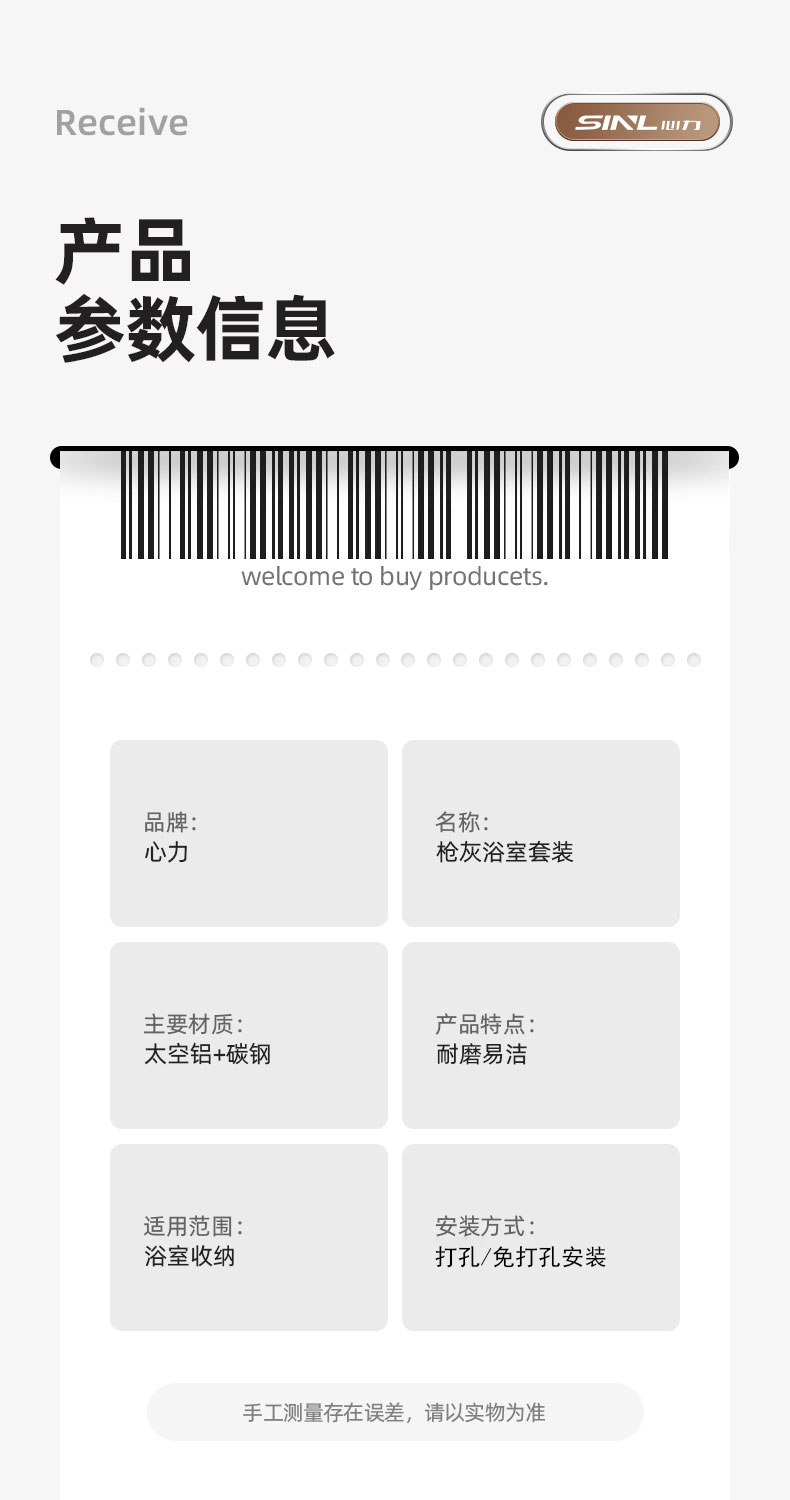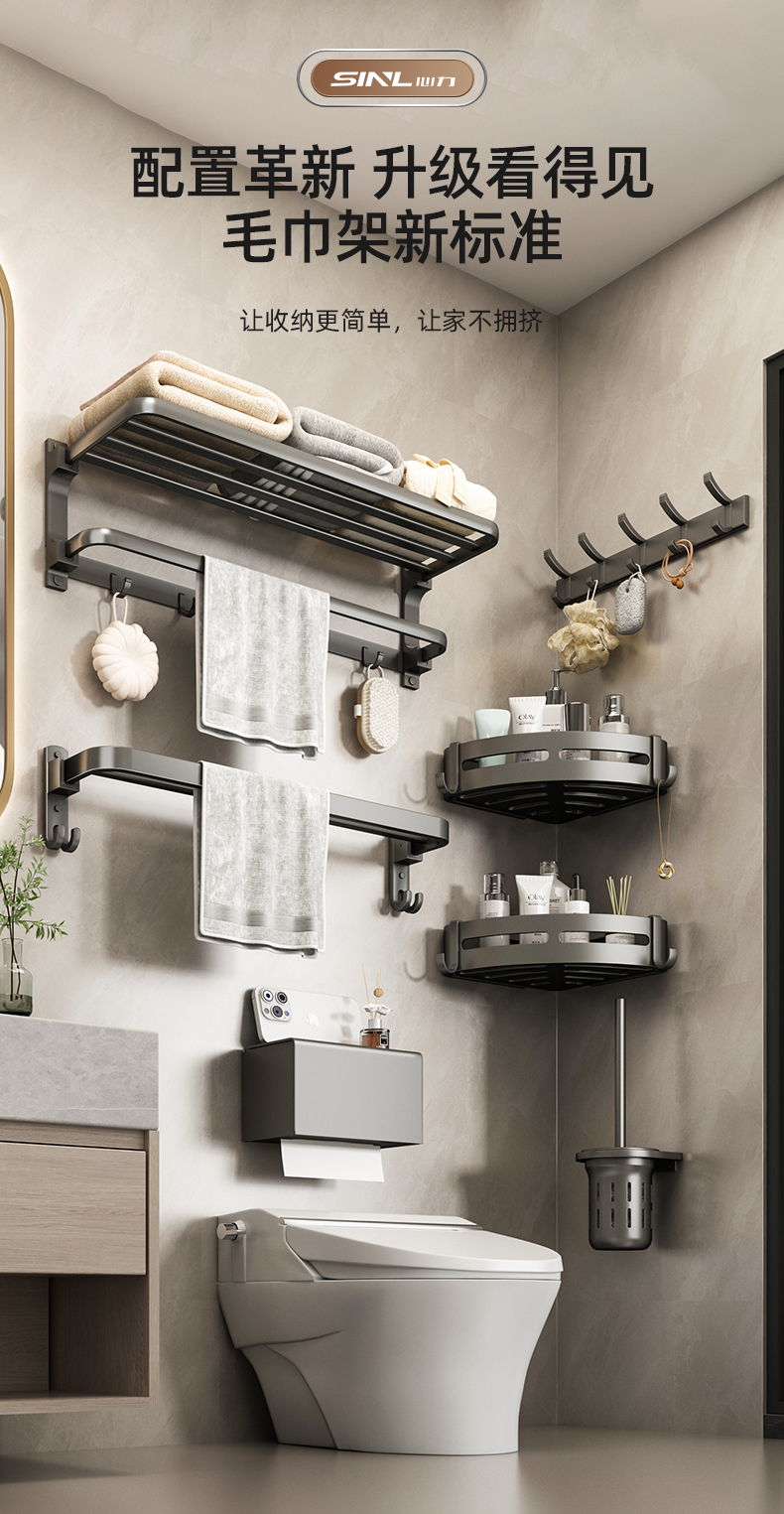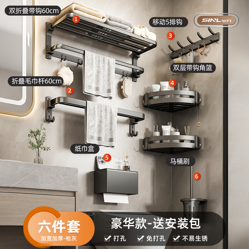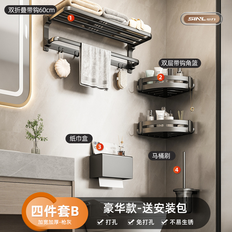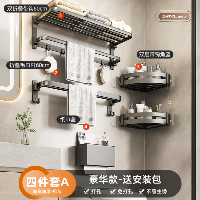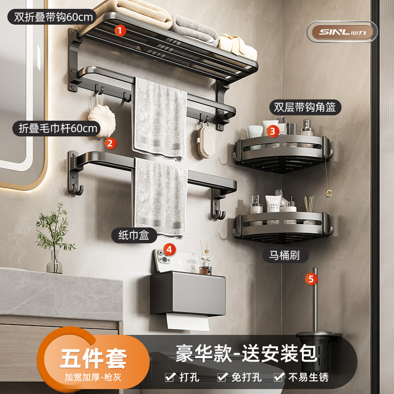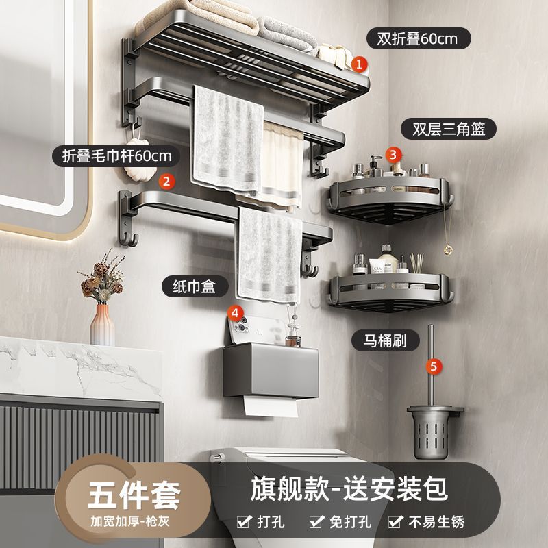 • Gun Ash-Double 접이식 목욕 수건걸이 XY-5종 세트