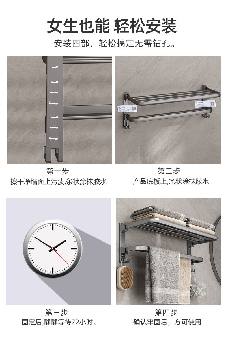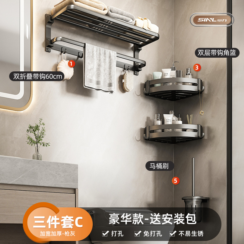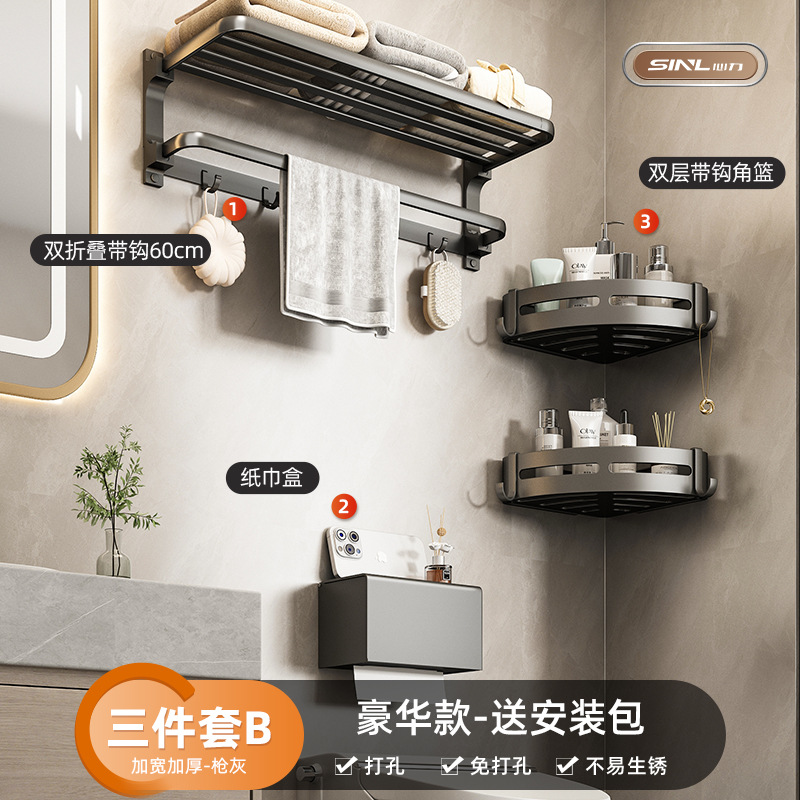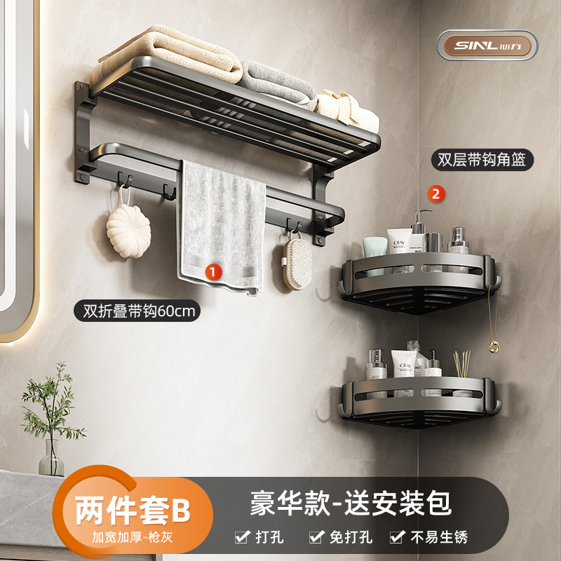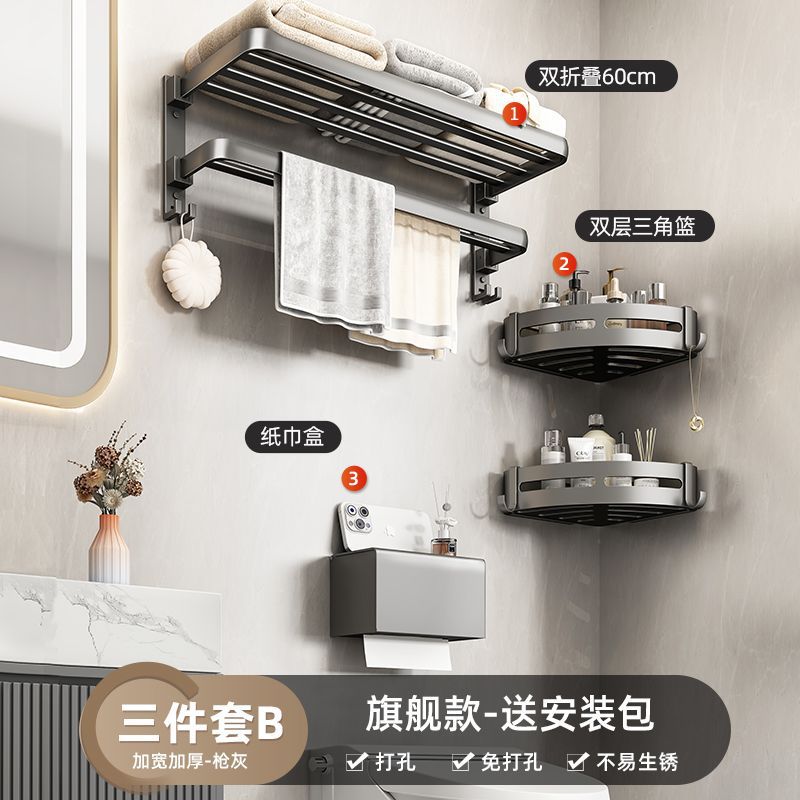• Gun Ash-[플래그십] 후크가 있는 두꺼운 이중 접이식 목욕 수건걸이 XY-3종 세트 B