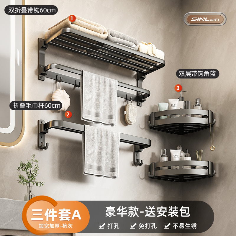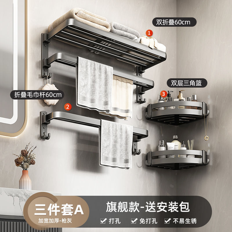 • Gun Ash-[플래그십] 후크가 있는 두꺼운 이중 접이식 목욕 수건걸이 XY-3종 세트 A