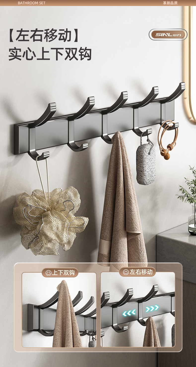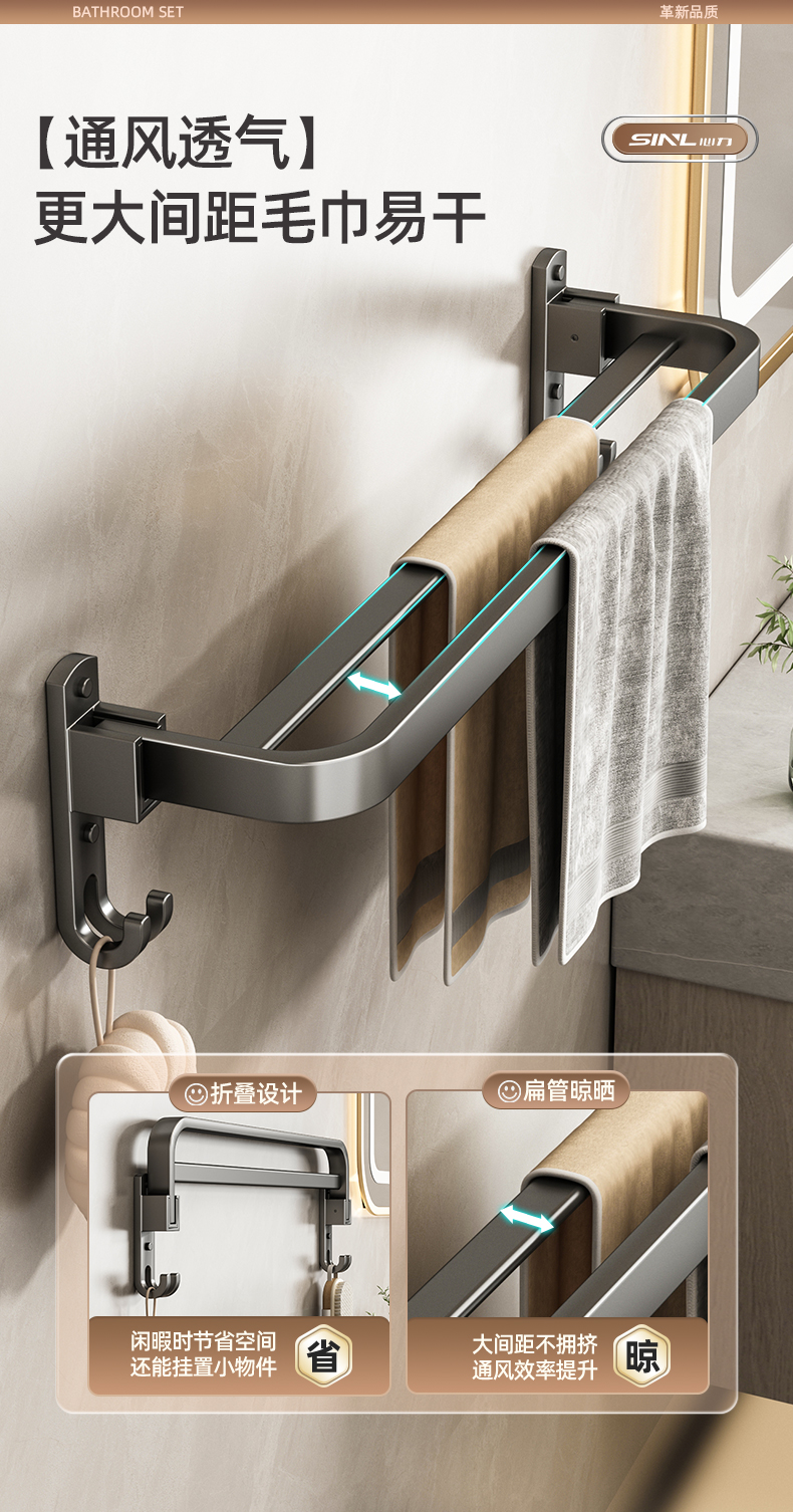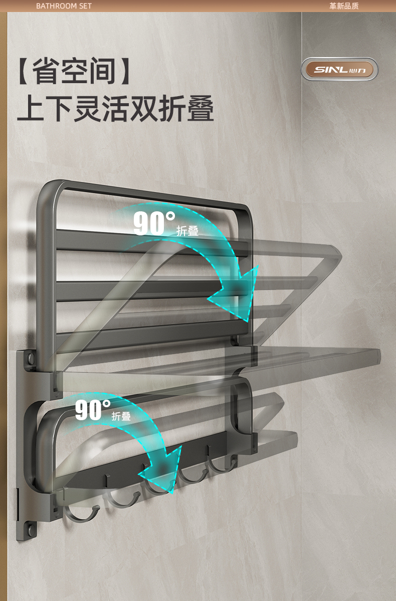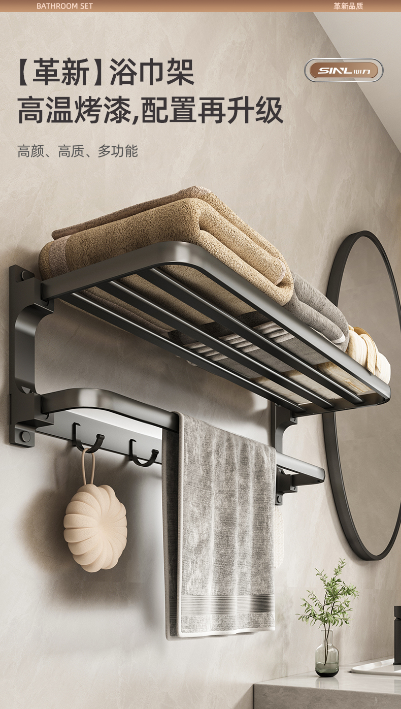 • Gun Ash-[플래그십] 후크가 있는 두꺼운 이중 접이식 목욕 수건걸이 XY-5종 세트