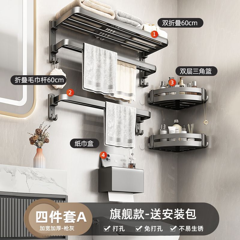 • Gun Ash-[플래그십] 후크가 있는 두꺼운 이중 접이식 목욕 수건걸이 XY-4종 세트 A