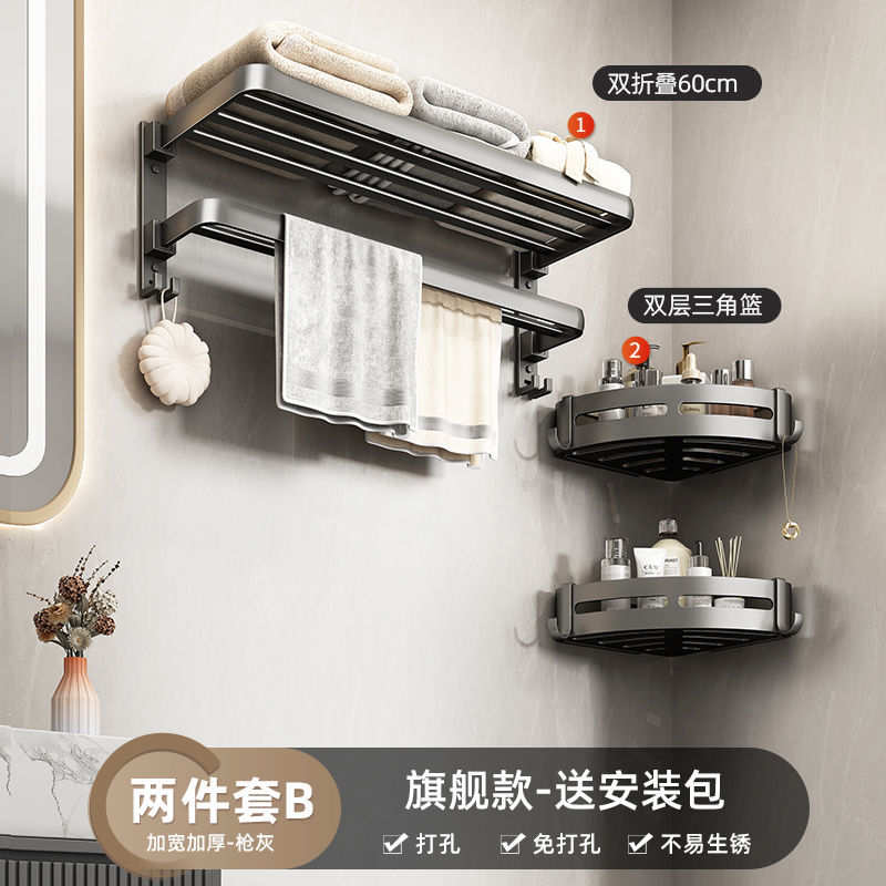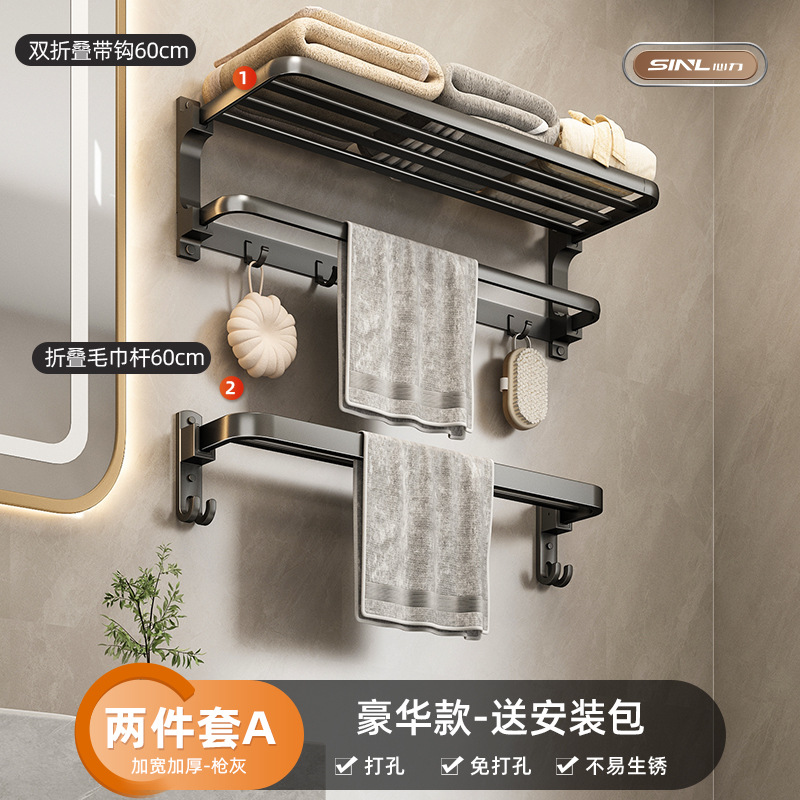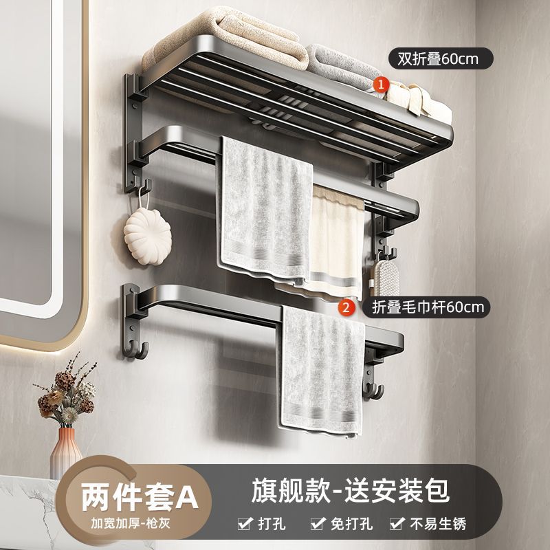• Gun Ash-[플래그십] 후크가 있는 두꺼운 이중 접이식 목욕 수건걸이 XY-2종 세트 A