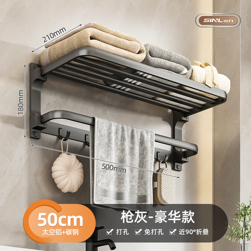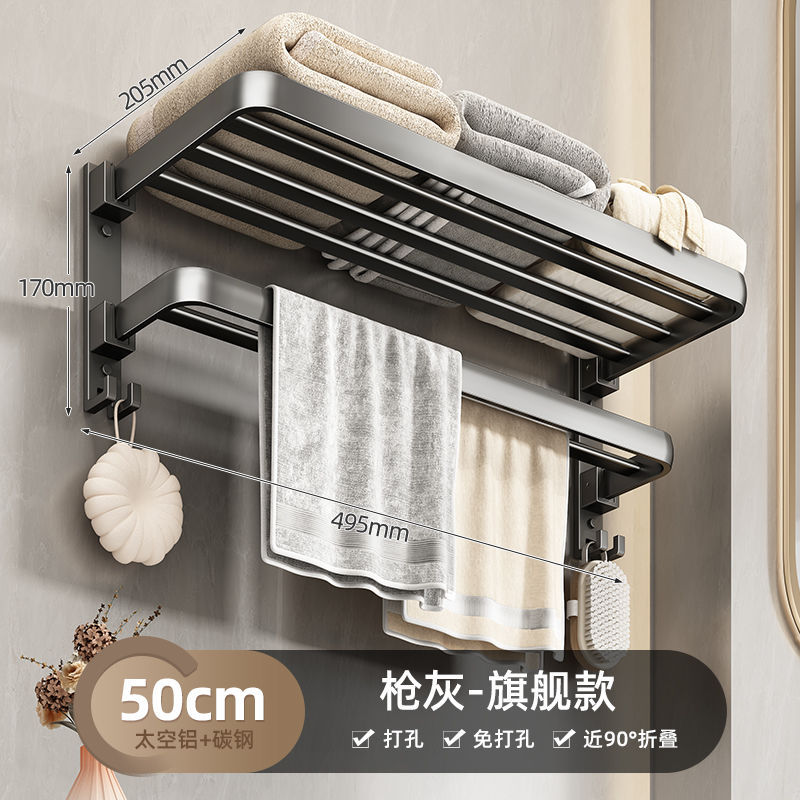 • Gun Ash-[플래그십] 행 후크가 있는 두꺼운 이중 접이식 목욕 수건 걸이 50CM
