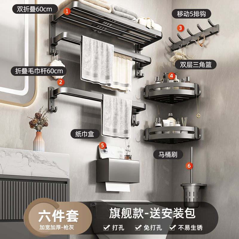 • Gun Ash-[플래그십] 후크가 있는 두꺼운 이중 접이식 목욕 수건걸이 XY-6종 세트