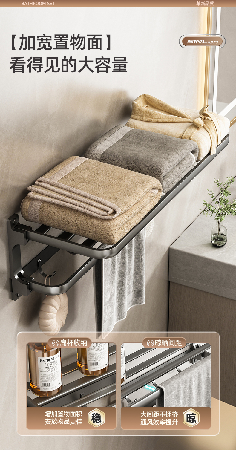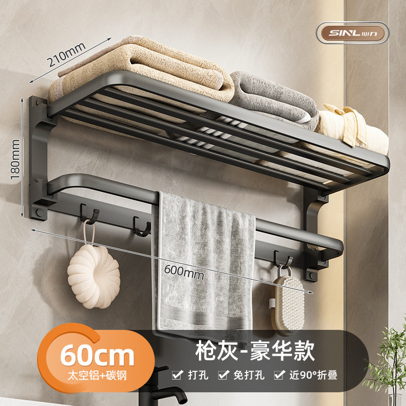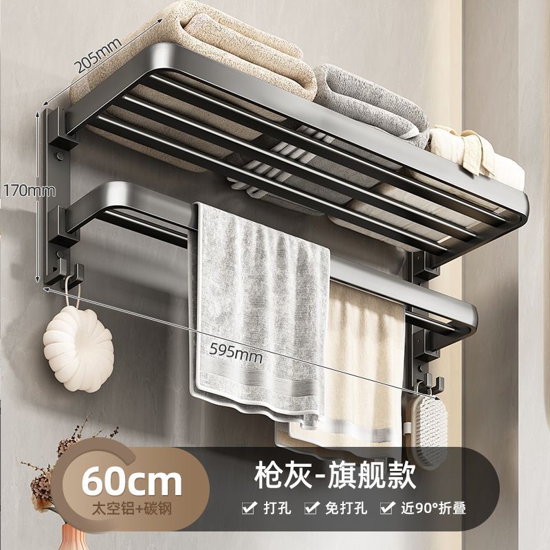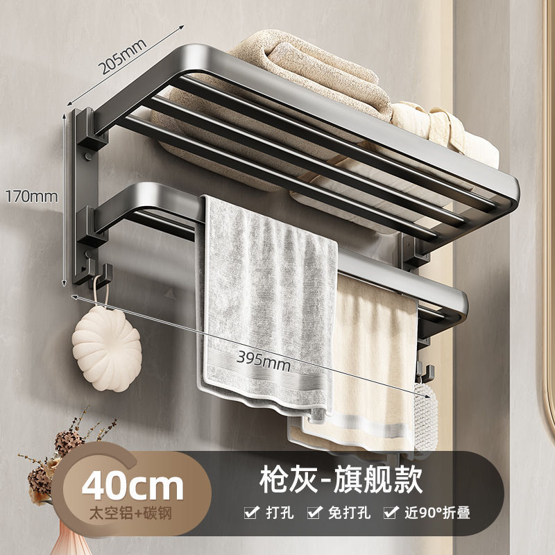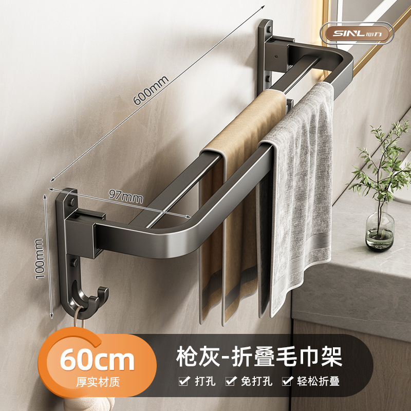 • Gun Ash-[플래그십] 후크가 있는 두꺼운 이중 접이식 목욕 수건걸이 60CM