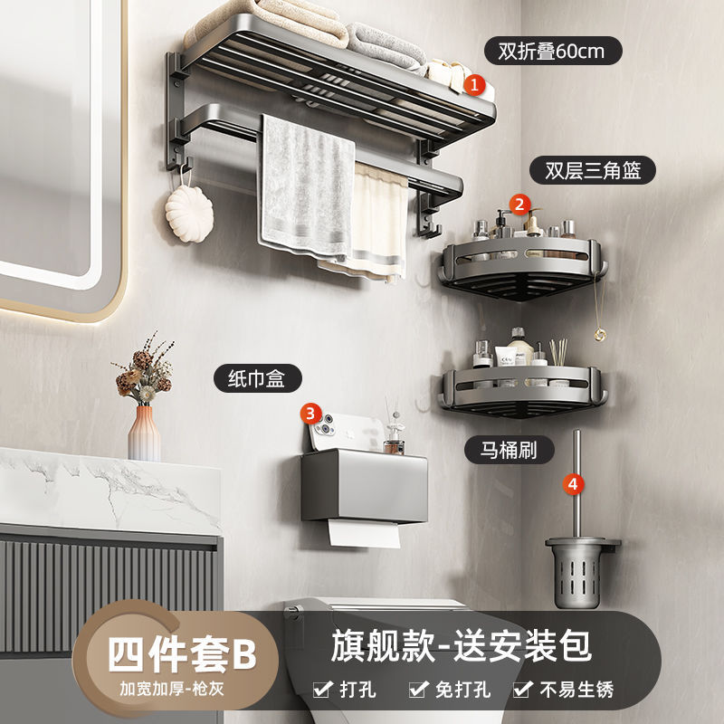 • Gun Ash-[플래그십] 후크가 있는 두꺼운 이중 접이식 목욕 수건걸이 XY-4종 세트 B