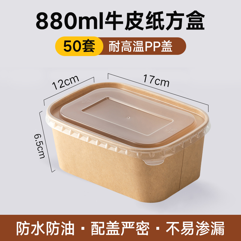 • 880ml 두꺼운 사각형 상자 + 고온 방지 PP 뚜껑 [50 세트]