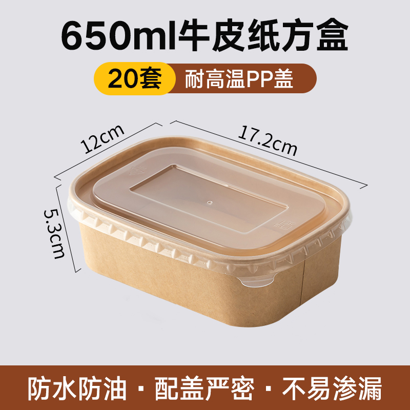 • 650ml 두꺼운 사각형 상자 + 고온 방지 PP 뚜껑 [20 세트]