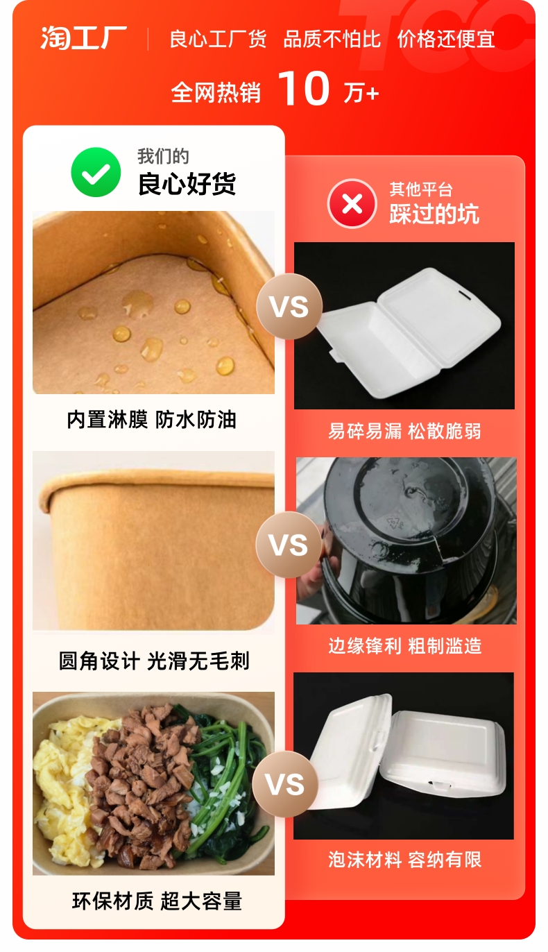 • 650ml 두꺼운 사각형 상자 + 고온 방지 PP 뚜껑 [300 세트]