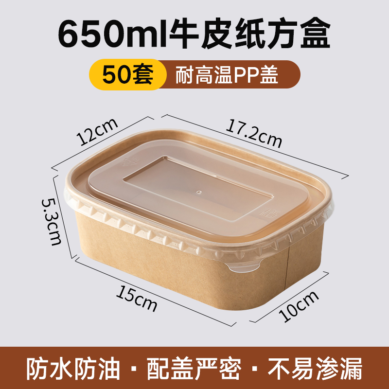 • 650ml 두꺼운 사각형 상자 + 고온 방지 PP 뚜껑 [50 세트]