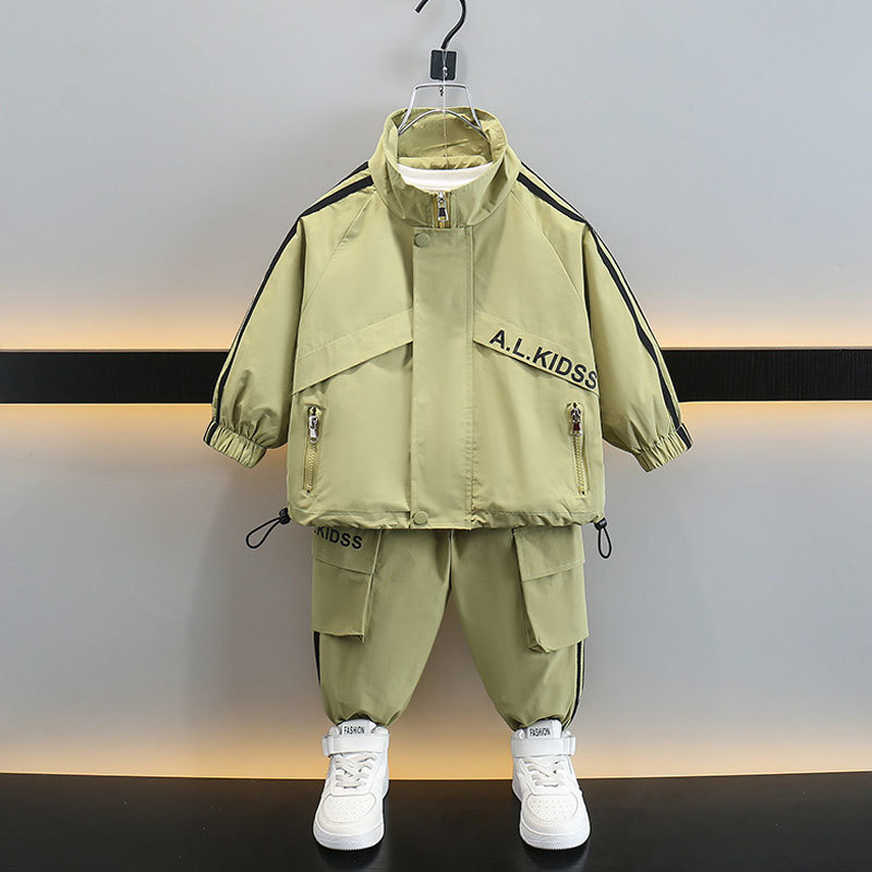 남학생 봄 코트 세트 2024 새로운 어린이 봄 쿨 스포츠웨어 캐주얼 투피스 세트