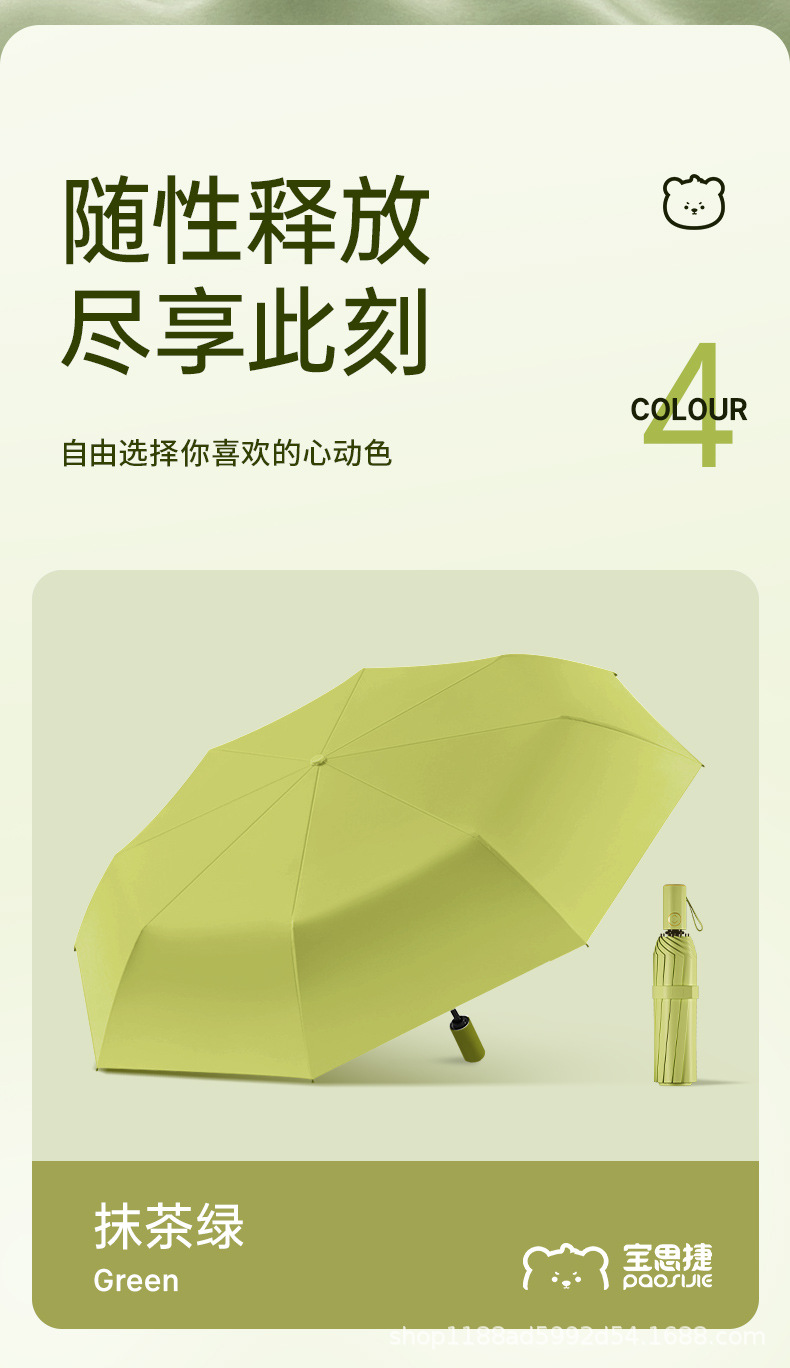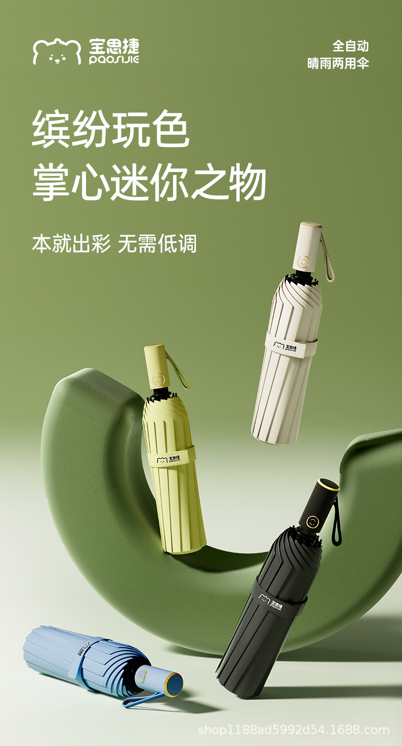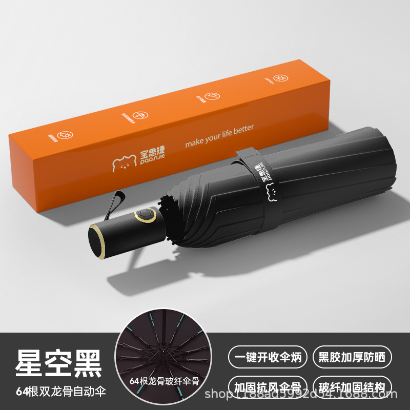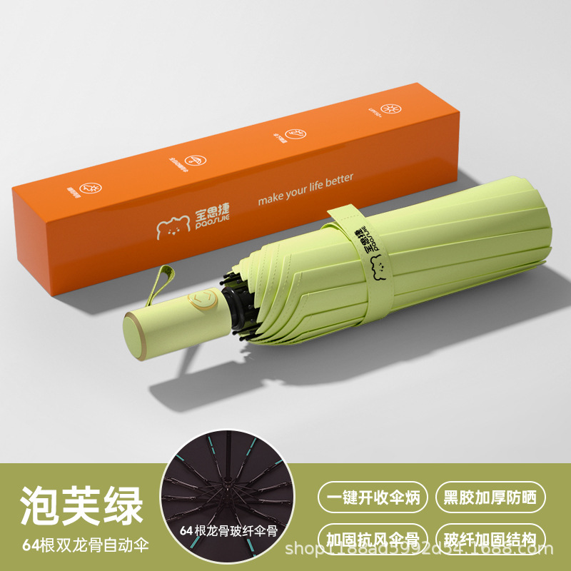 Baosijie 완전 자동 우산 대형 접히는 검은 고무 맑고 비 이중 사용 학생 태양 우산 선스크린 외부 우산스토어 가기