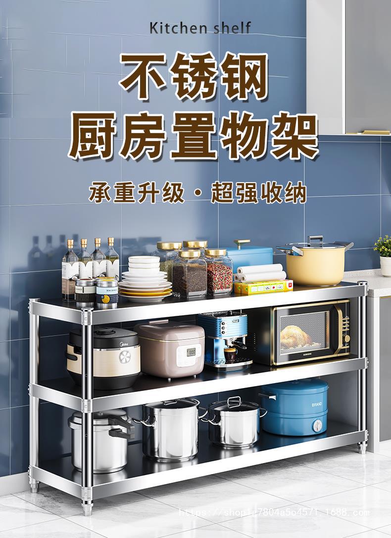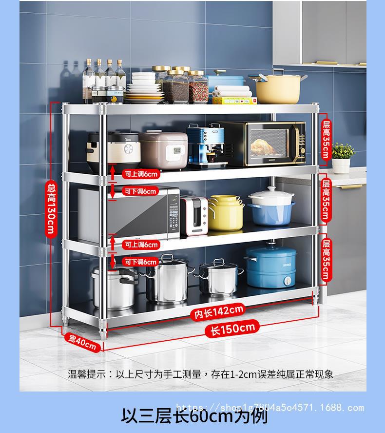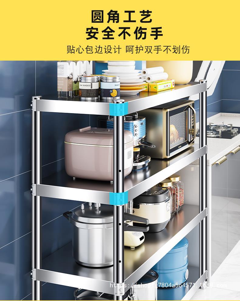 주방 랙 캐비닛 스테인레스 스틸 선반 캐비닛 다기능 스토리지 가정용 스토브 랙 바닥 스탠딩 전자 레인지 랙스토어 가기