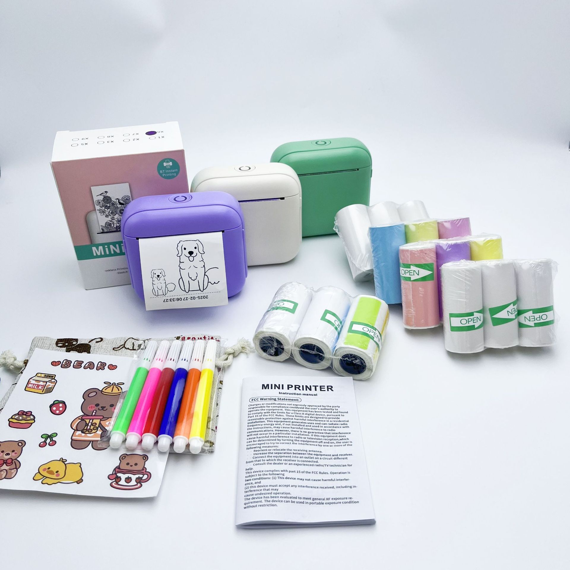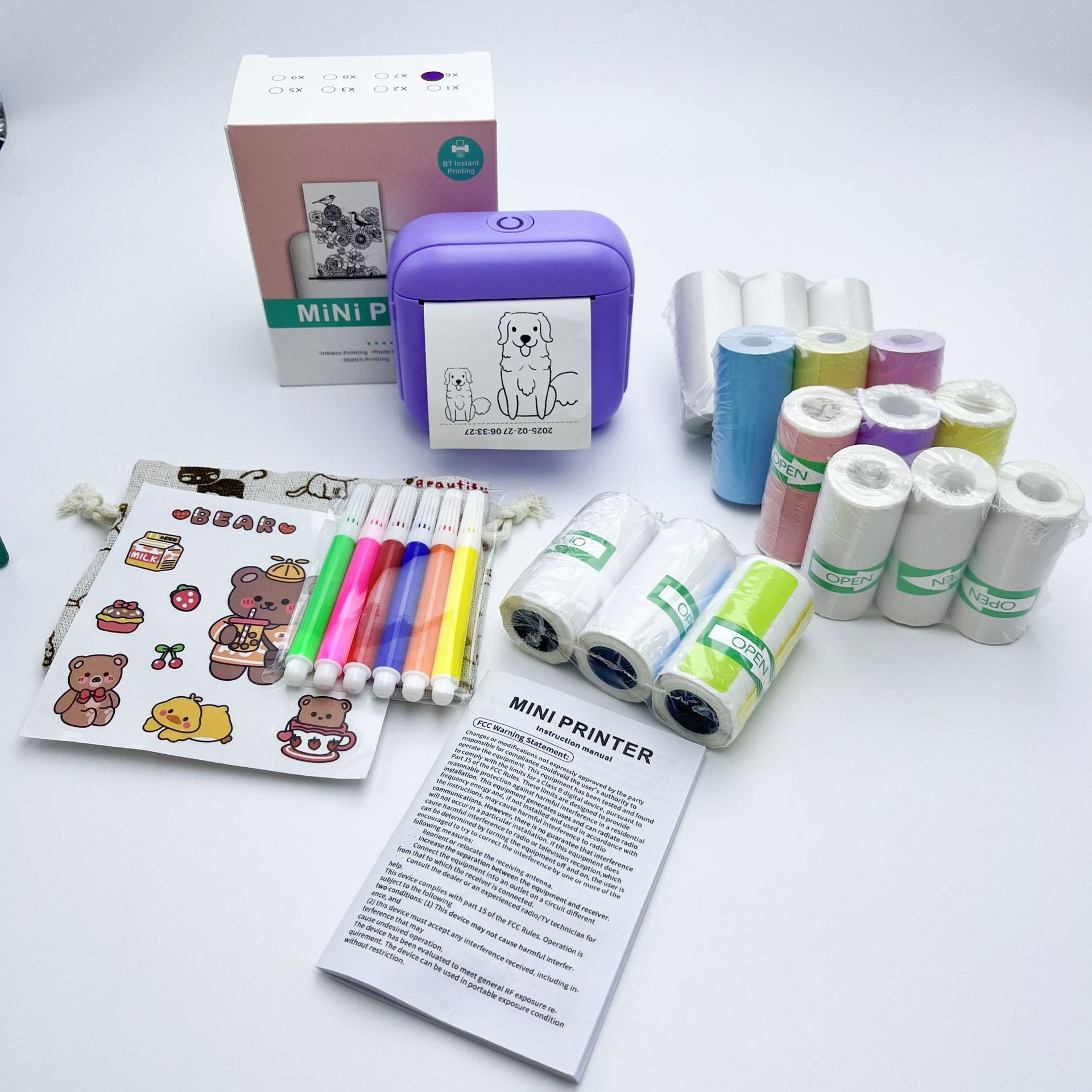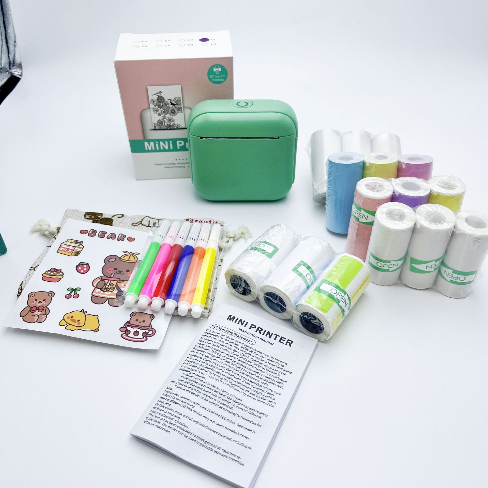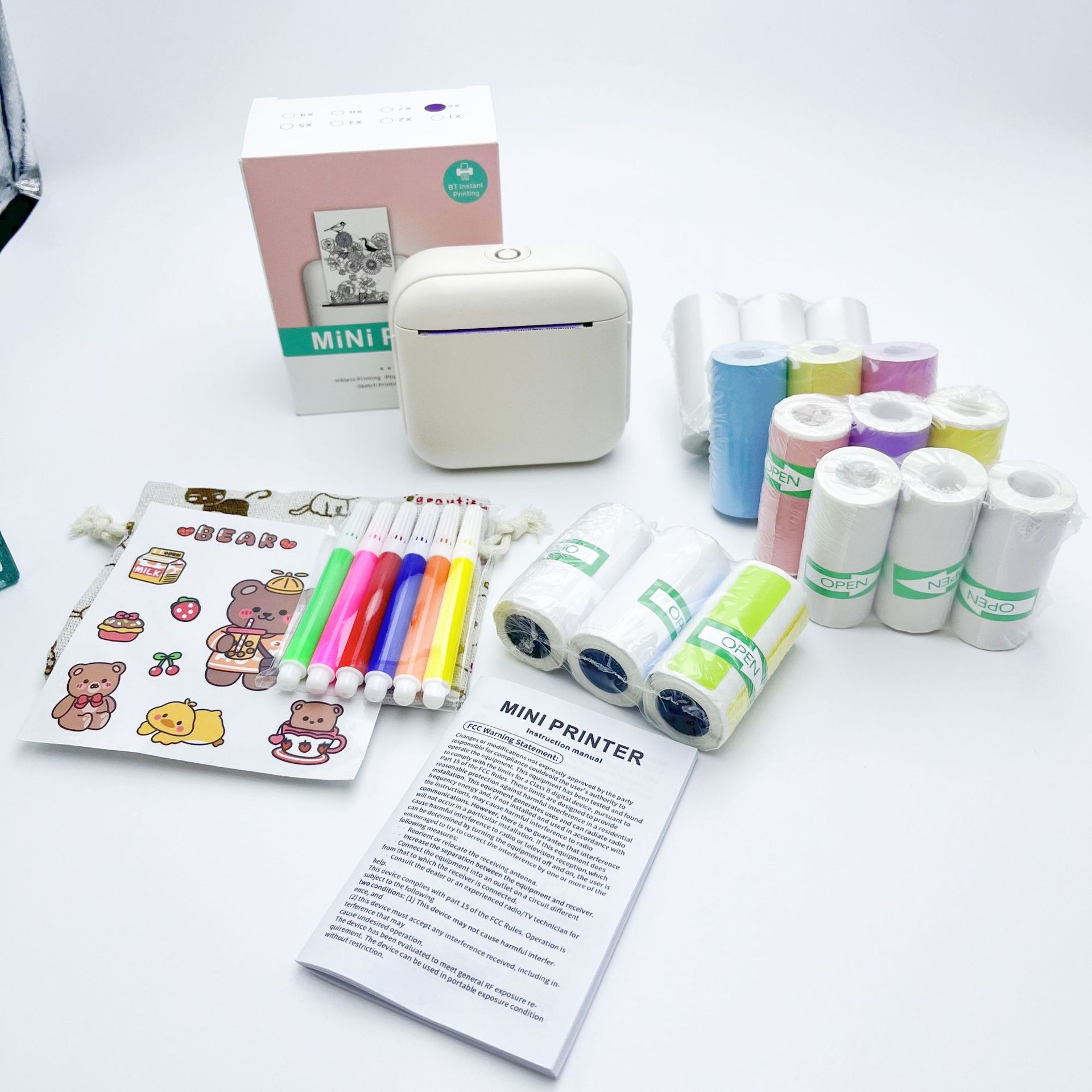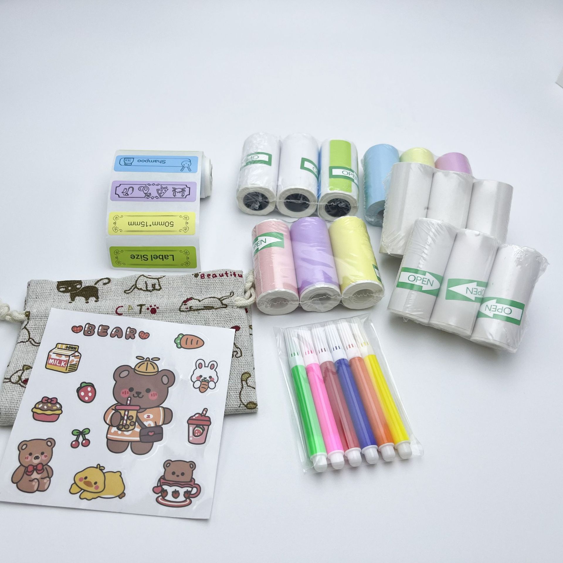 미니 다기능 프린터, 15롤 종이/스티커/컬러 펜 패키지가 포함된 휴대용 사진 라벨 프린터