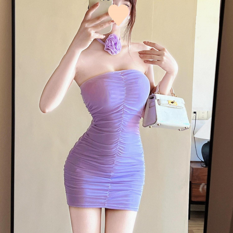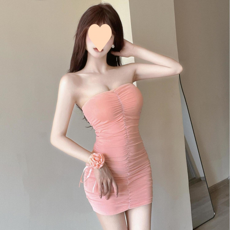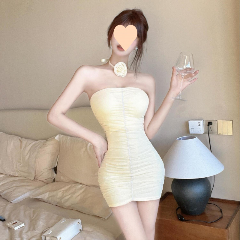 새로운 섹시한 끈이없는 원피스 어깨 단단한 등이없는 허리 모든 경기 슬리밍 3 차원 꽃 엉덩이 스커트