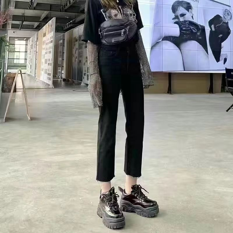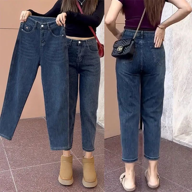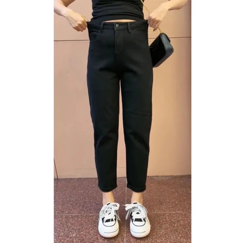배 모양의 그림 Harlan 스트레치 청바지 여성의 봄과 여름 통통녀 높은 허리 슬리밍 플러스 사이즈 자른 당근 바지스토어 가기