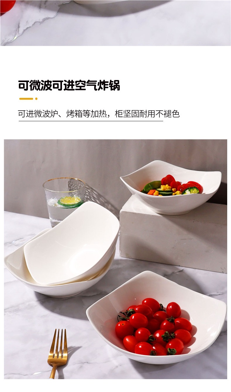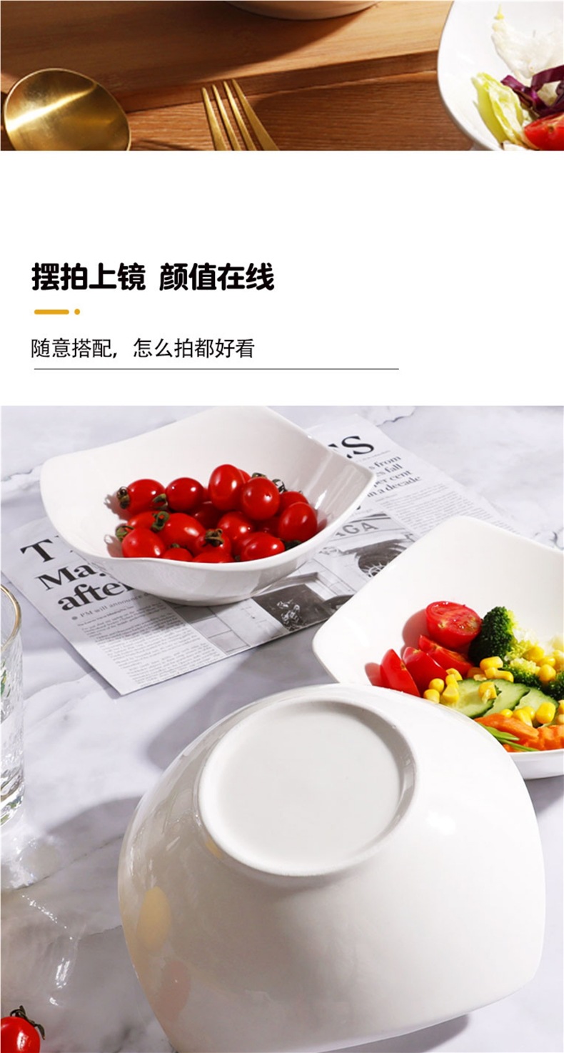 [17.6 4 팩] 4 개의 코너 플레이트 접시 가정용 간단한 세라믹 발 그릇 차가운 야채 수프 그릇 샐러드 그릇