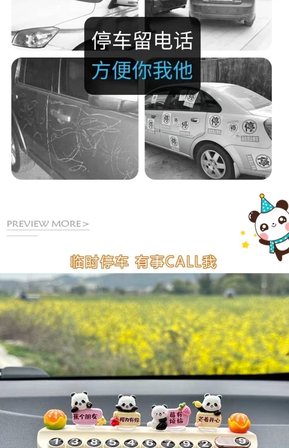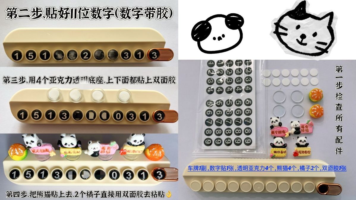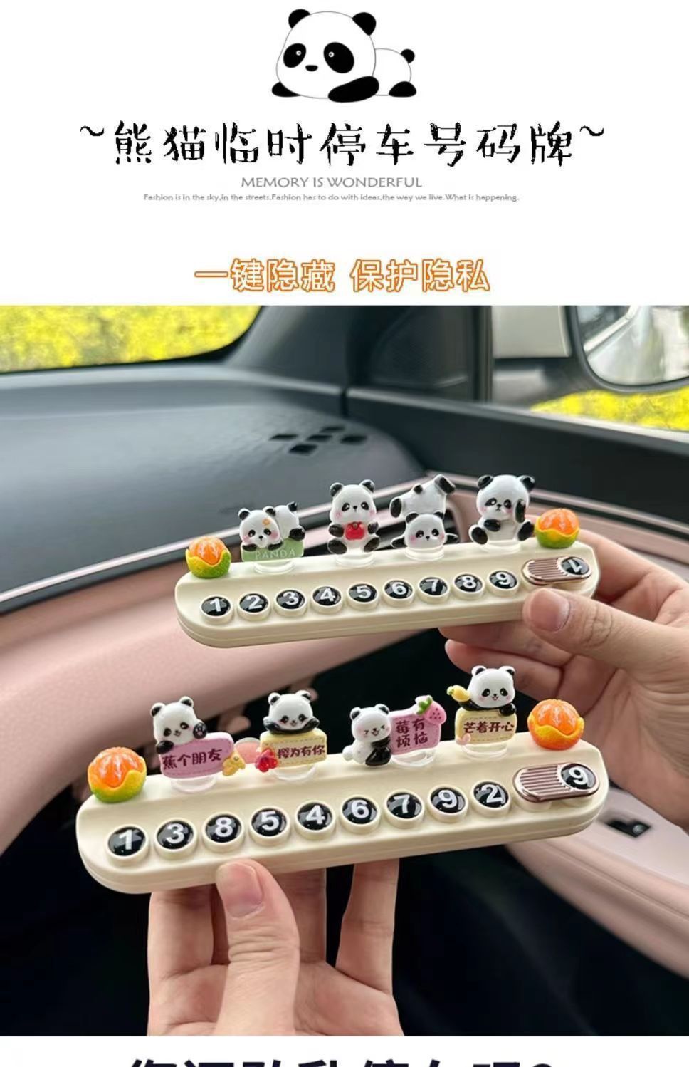 자동차 창조적 인 임시 주차 번호 플레이트 귀여운 팬더 자동차 휴대 전화 플레이트 자동차 장식 자동차 장식