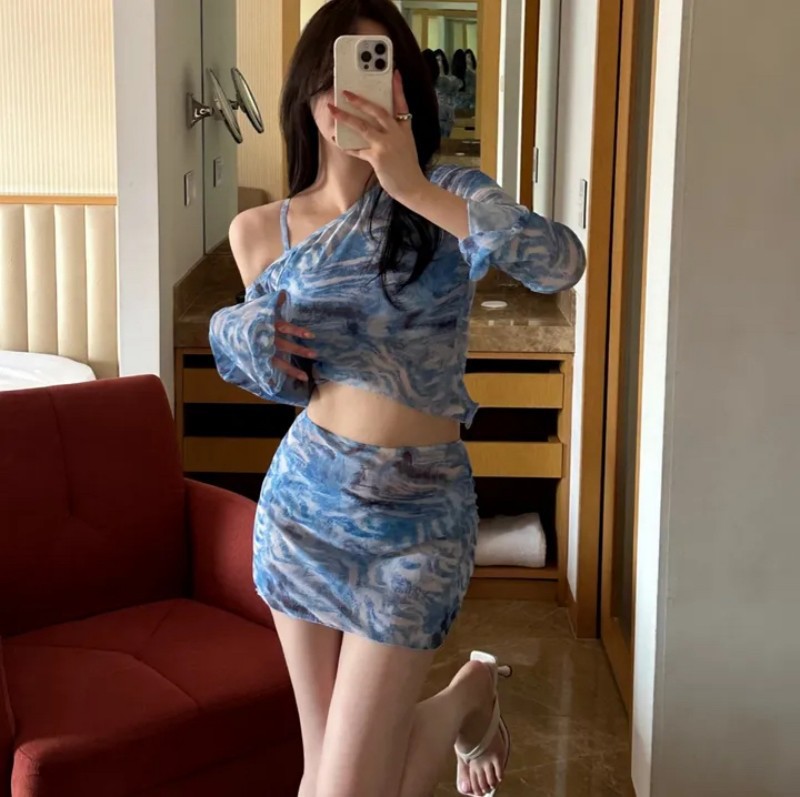 아름다운 소녀의 도파민 순수한 욕망 긴팔 휴일 캐주얼 스플릿 스커트 3 피스 수영복 여성용 수영복스토어 가기