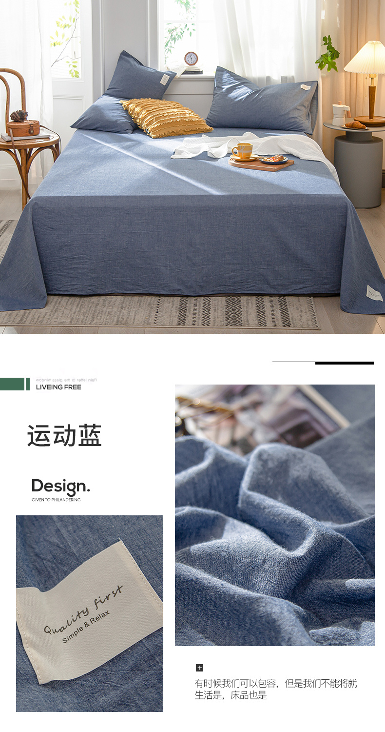 여름 면화 시트 싱글 100 면 오래 된 굵은 천 싱글 학생 기숙사 3 피스 싱글 베갯잇 2