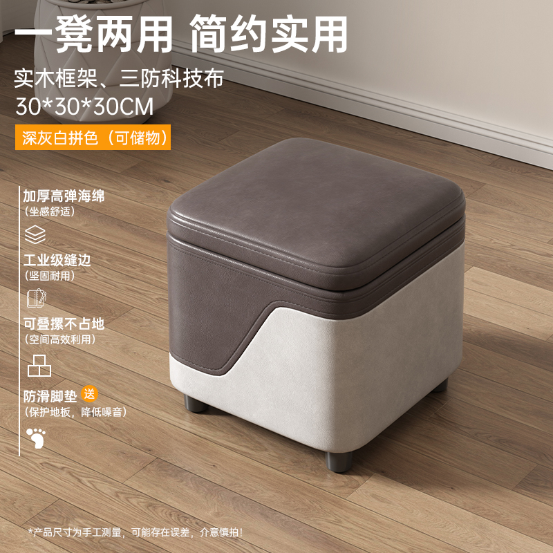 • 【방수 및 얼룩 방지❤수납스툴] 라이트그레이, 높이 27cm
