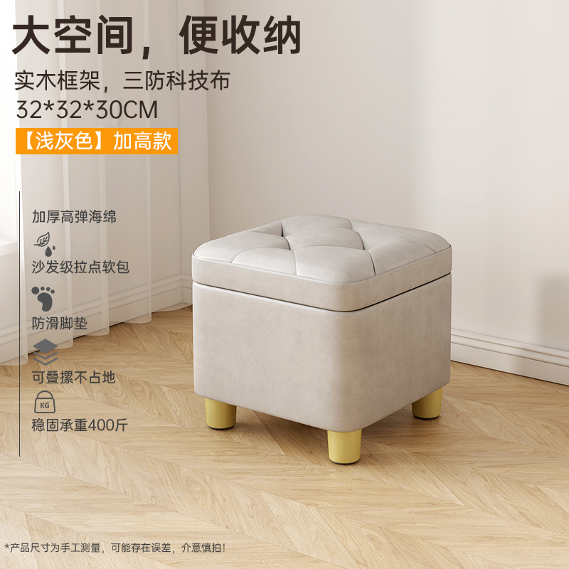 • 【확장 버전❤대용량 수납스툴] 라이트그레이, 높이 25cm