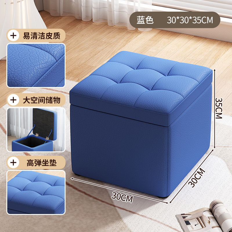 • [엄선된 PU가죽 수납스툴] 블루, 높이 30cm