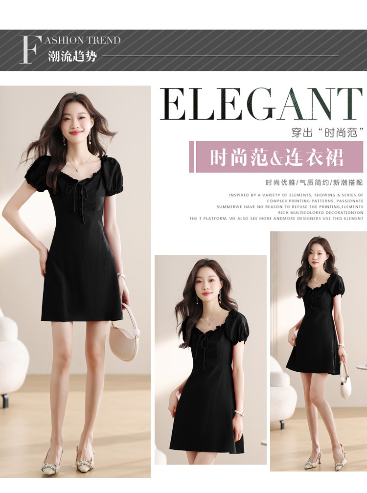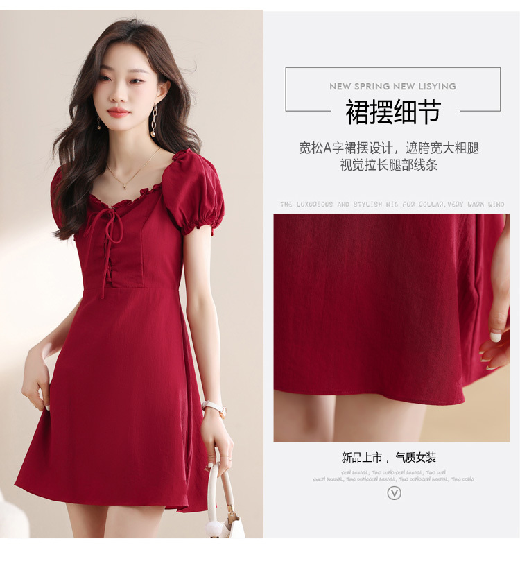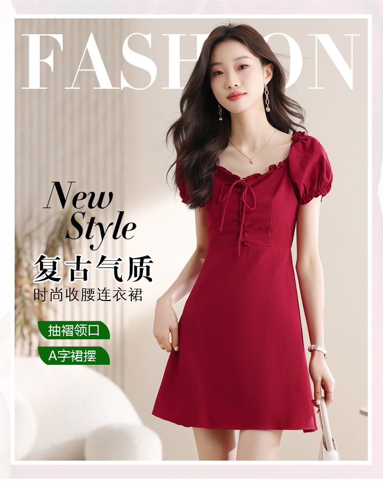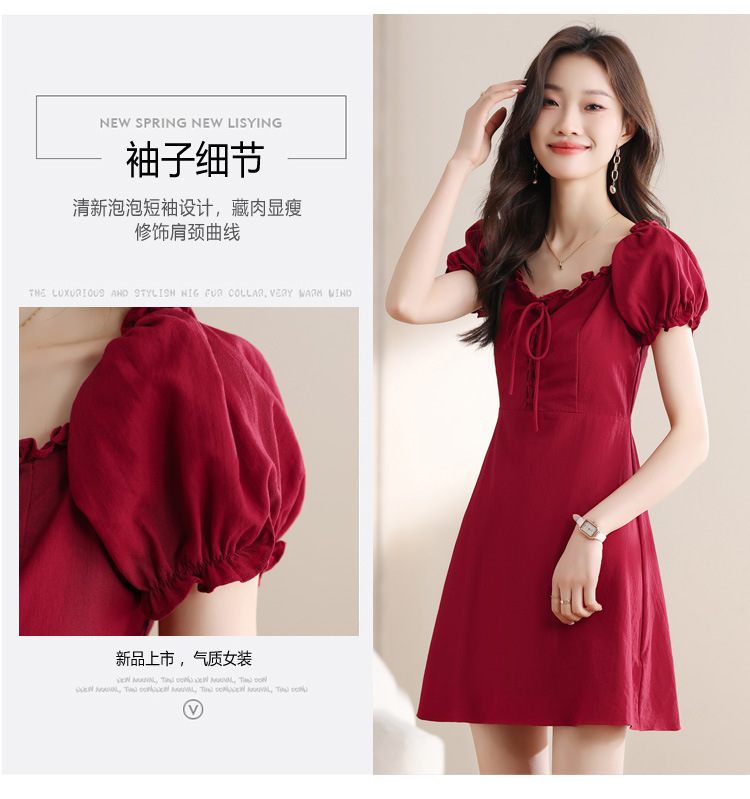 스퀘어 칼라 퍼프 슬리브 원피스 여성 여름 플라티코돈 프랑스 디자인 허리 라인 슬리밍 레드 A-라인 스커트스토어 가기