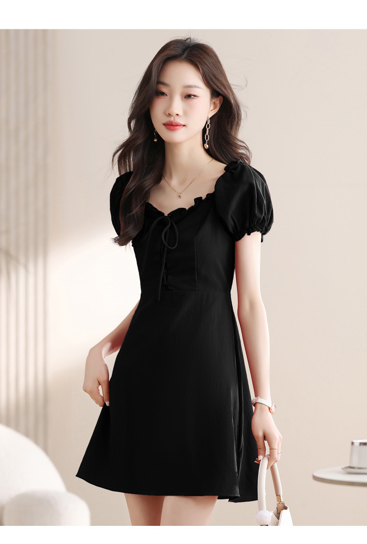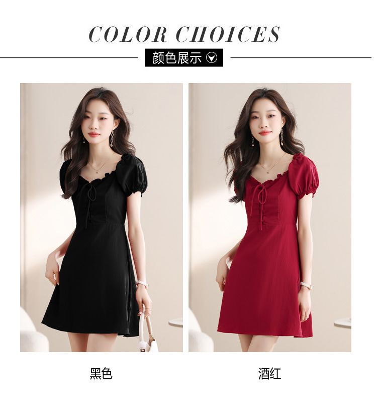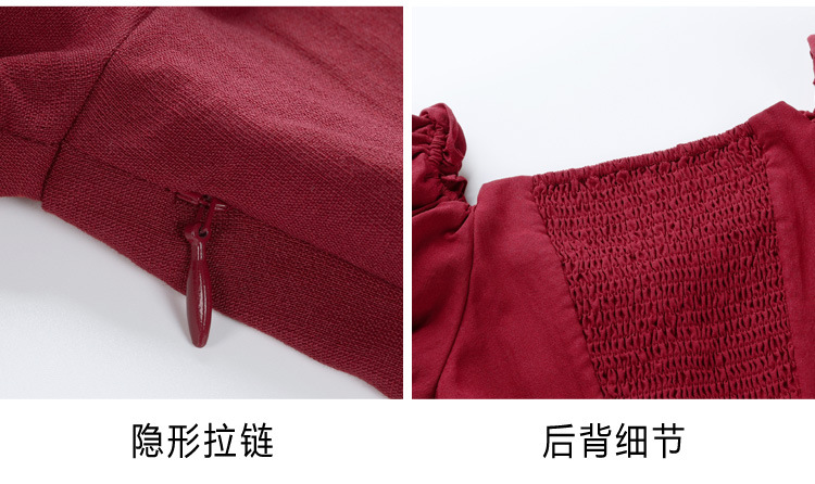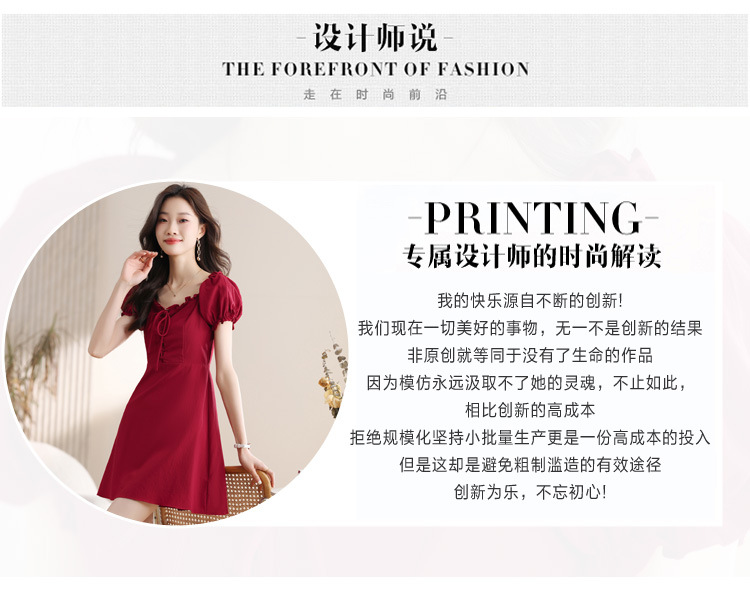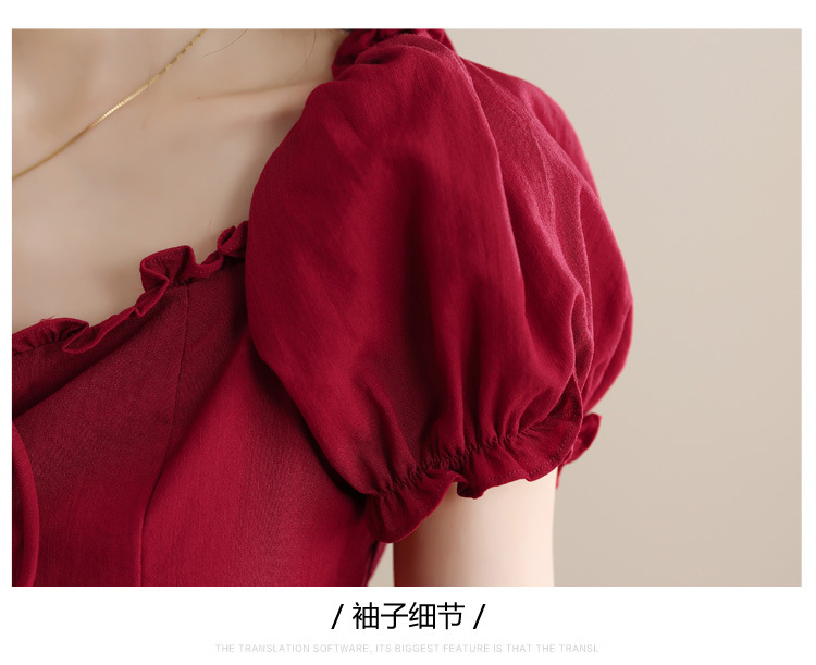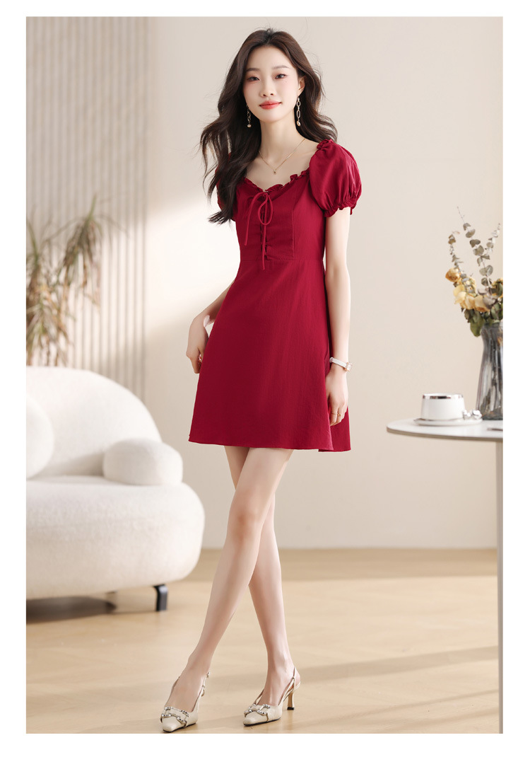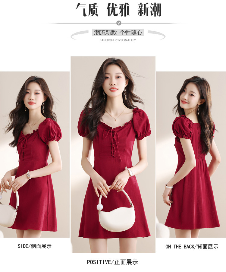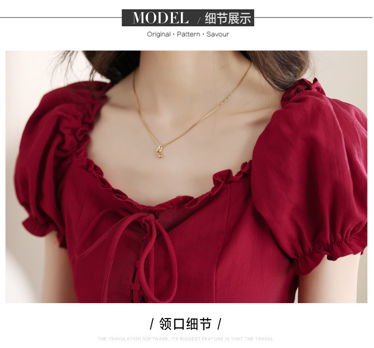 스퀘어 칼라 퍼프 슬리브 원피스 여성 여름 플라티코돈 프랑스 디자인 허리 라인 슬리밍 레드 A-라인 스커트