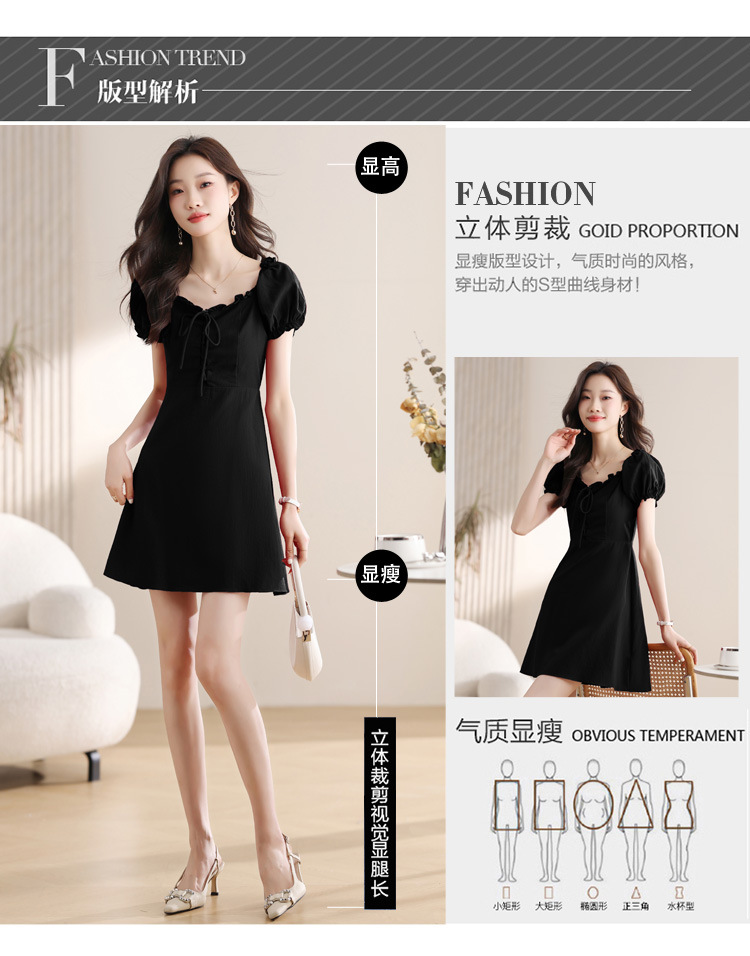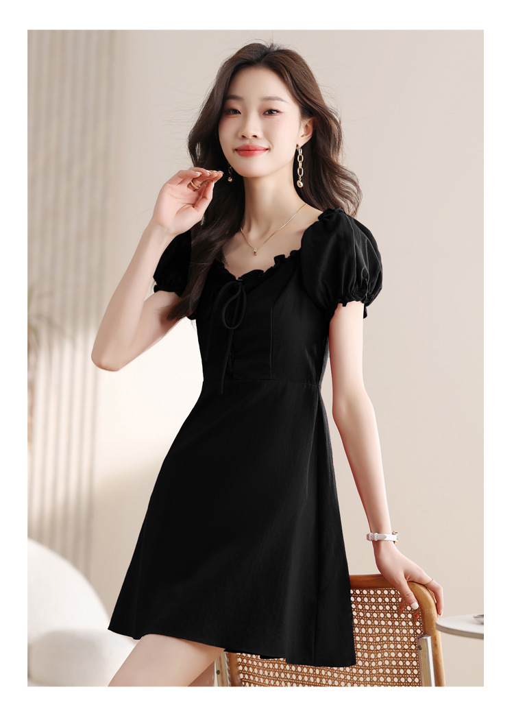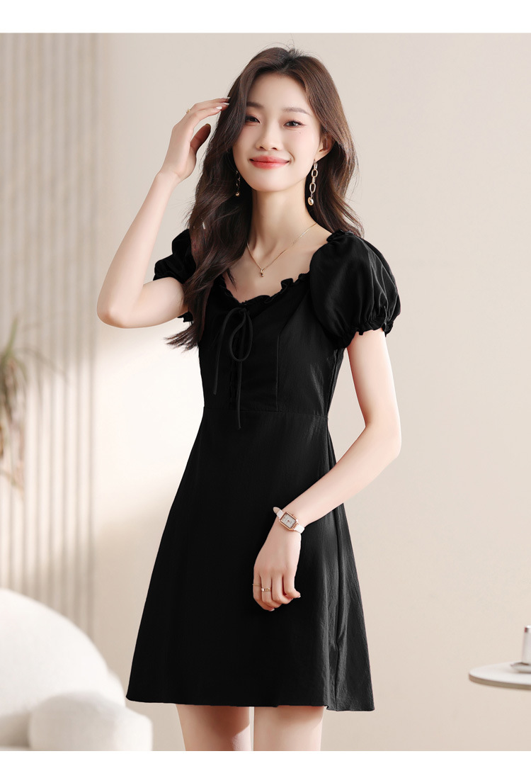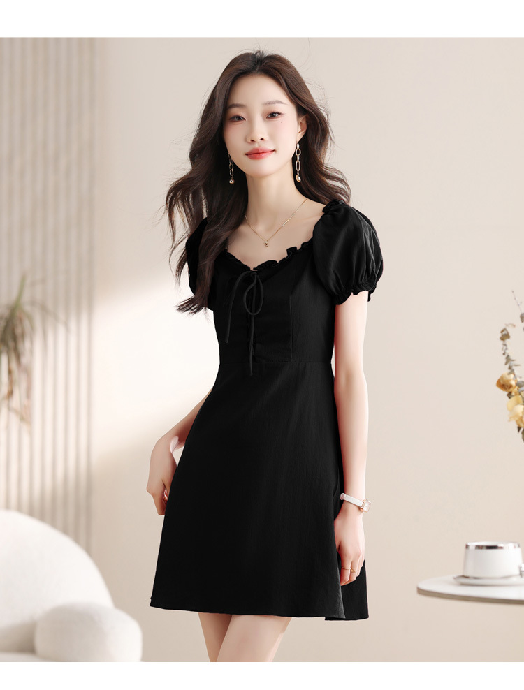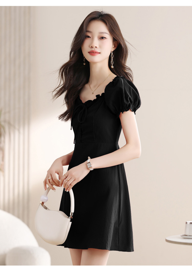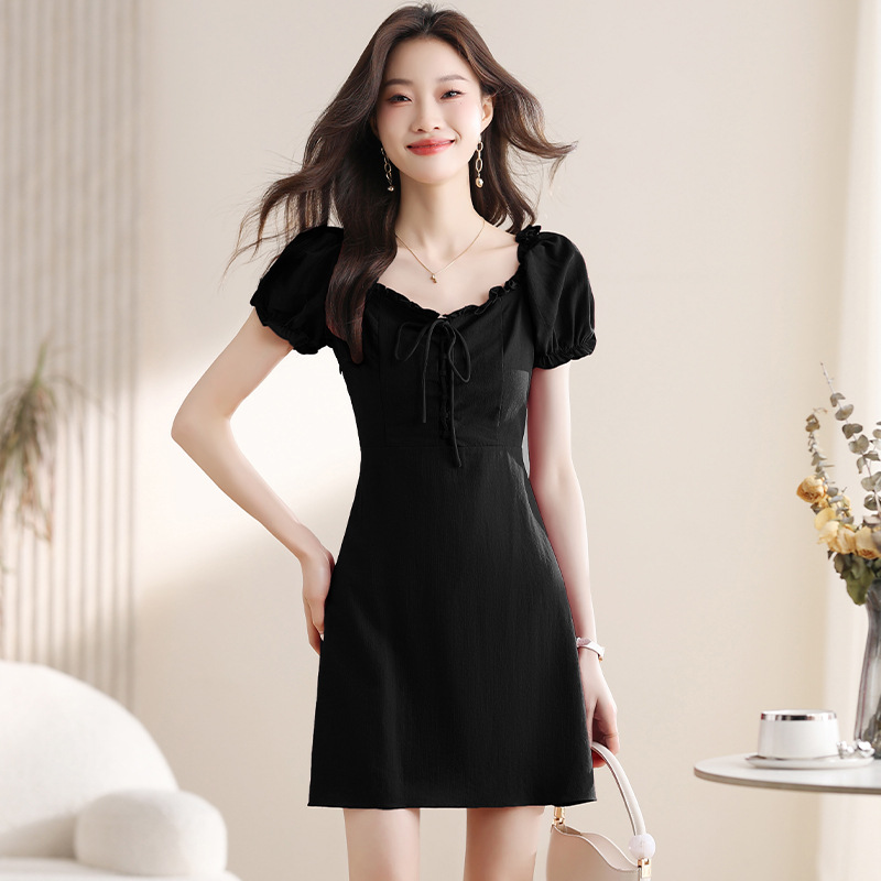 스퀘어 칼라 퍼프 슬리브 원피스 여성 여름 플라티코돈 프랑스 디자인 허리 라인 슬리밍 레드 A-라인 스커트