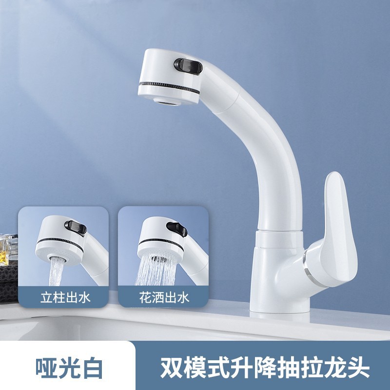 욕실 모든 구리 베이킹 페인트 흰색 좌석 형 얼굴 세척 핸드 스탠드 상부 분지 뜨겁고 차가운 추출 회전 욕실 캐비닛 수도꼭지