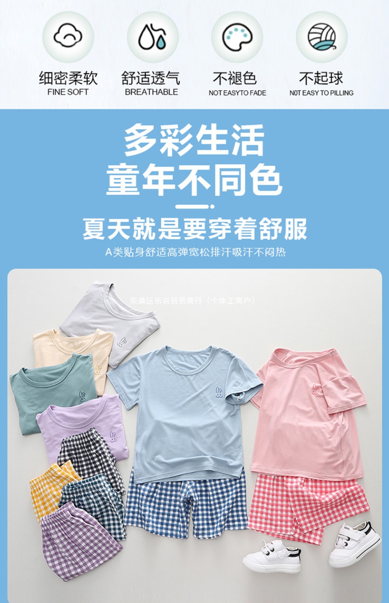 어린이 모달 파자마 여름 중대형 어린이 짧은 소매 반바지 에어컨 의류 여름 소년 소녀 홈 의류 도매스토어 가기