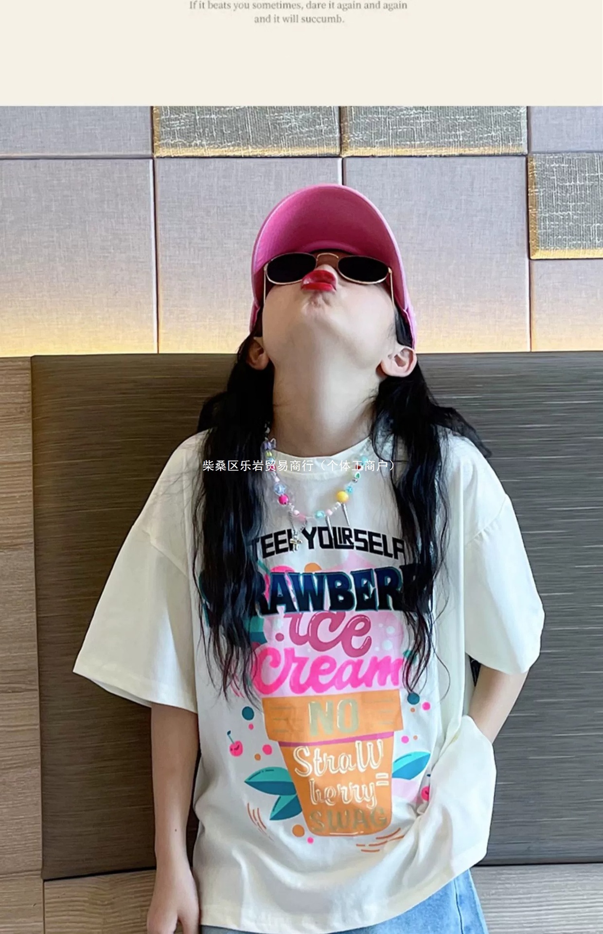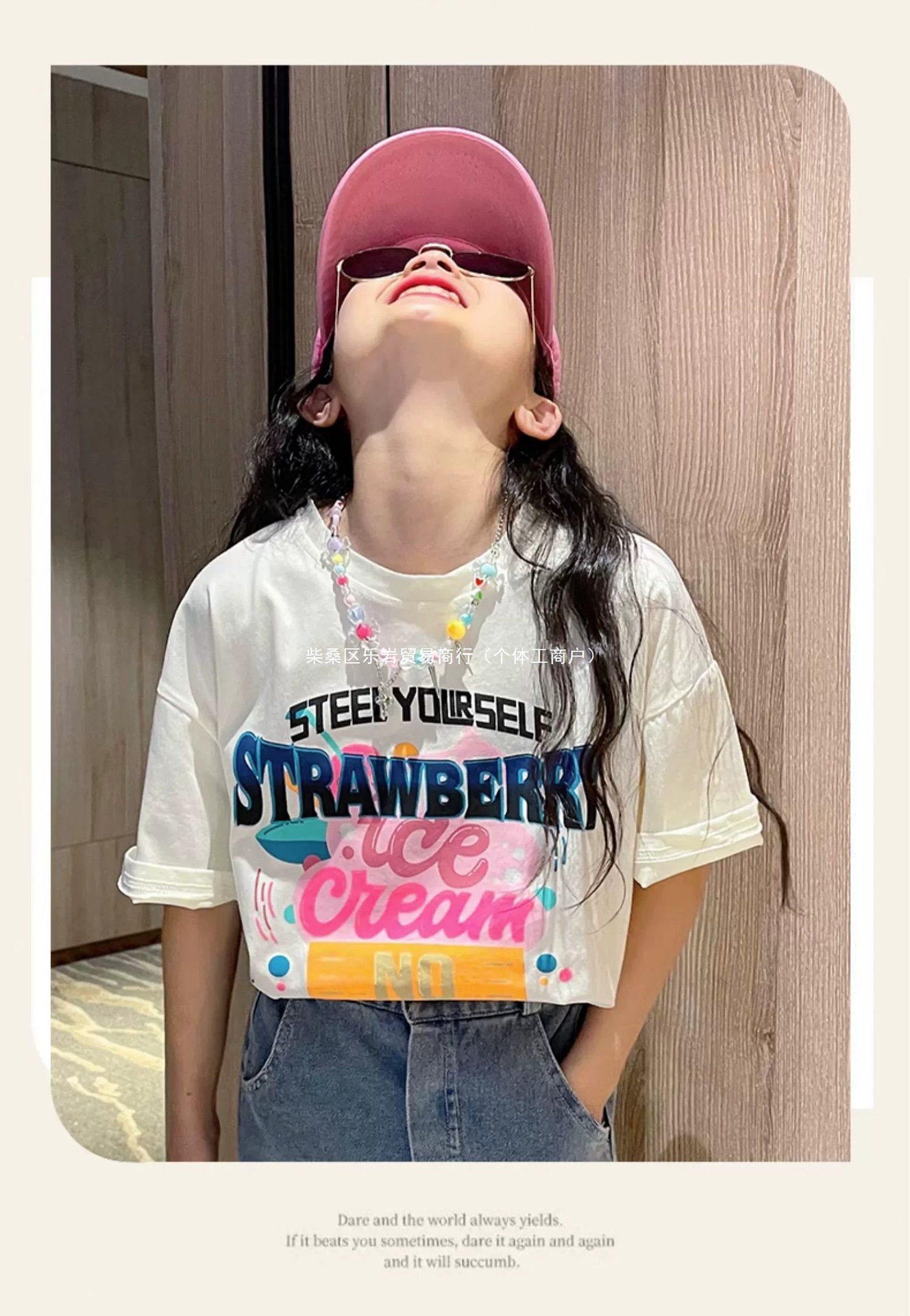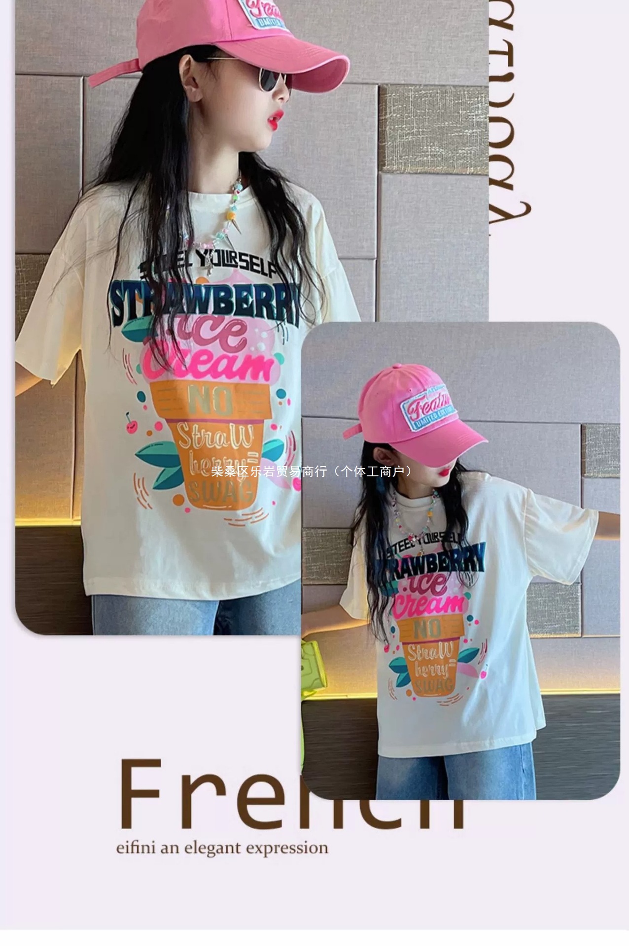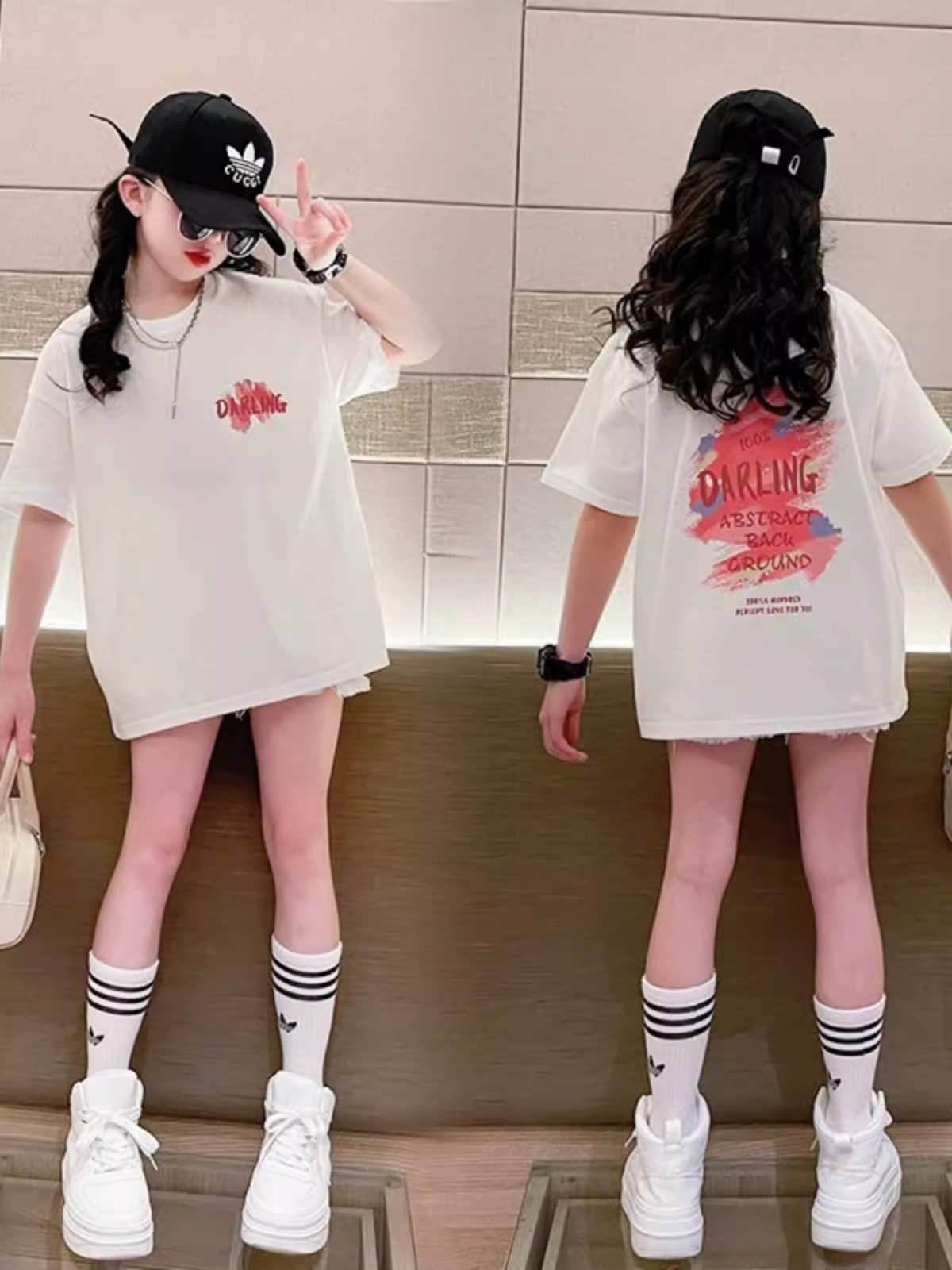 반팔 소녀 여름 2025 새로운 여름 소녀 큰 어린이 최고 디자인 틈새 여성 여름 어린이 면화 도매스토어 가기