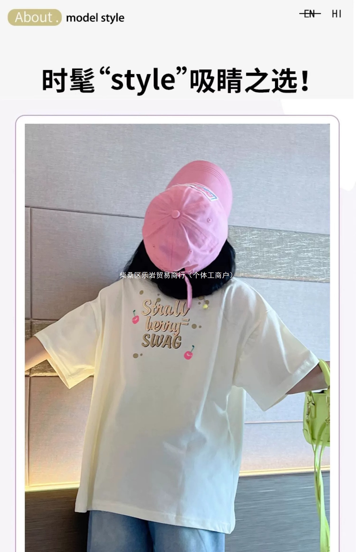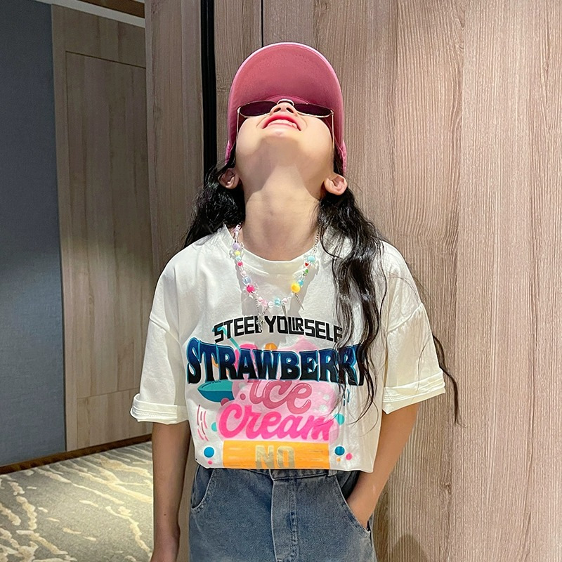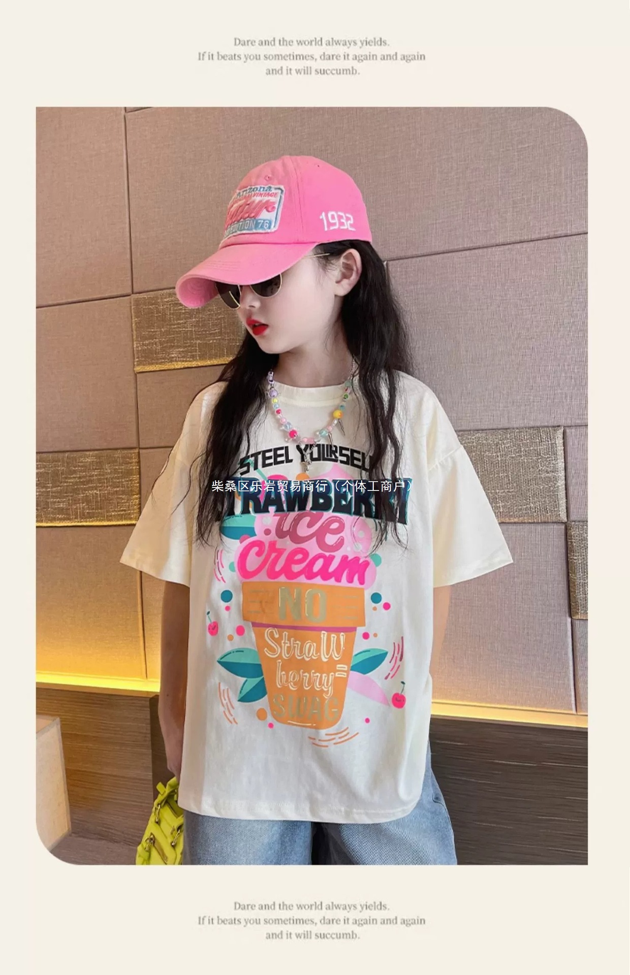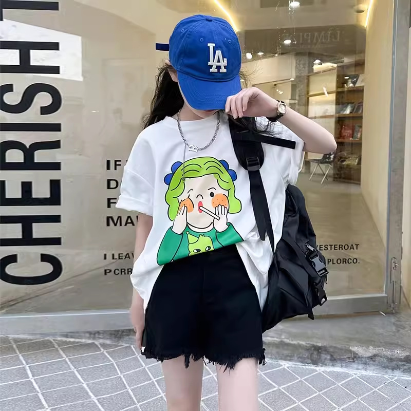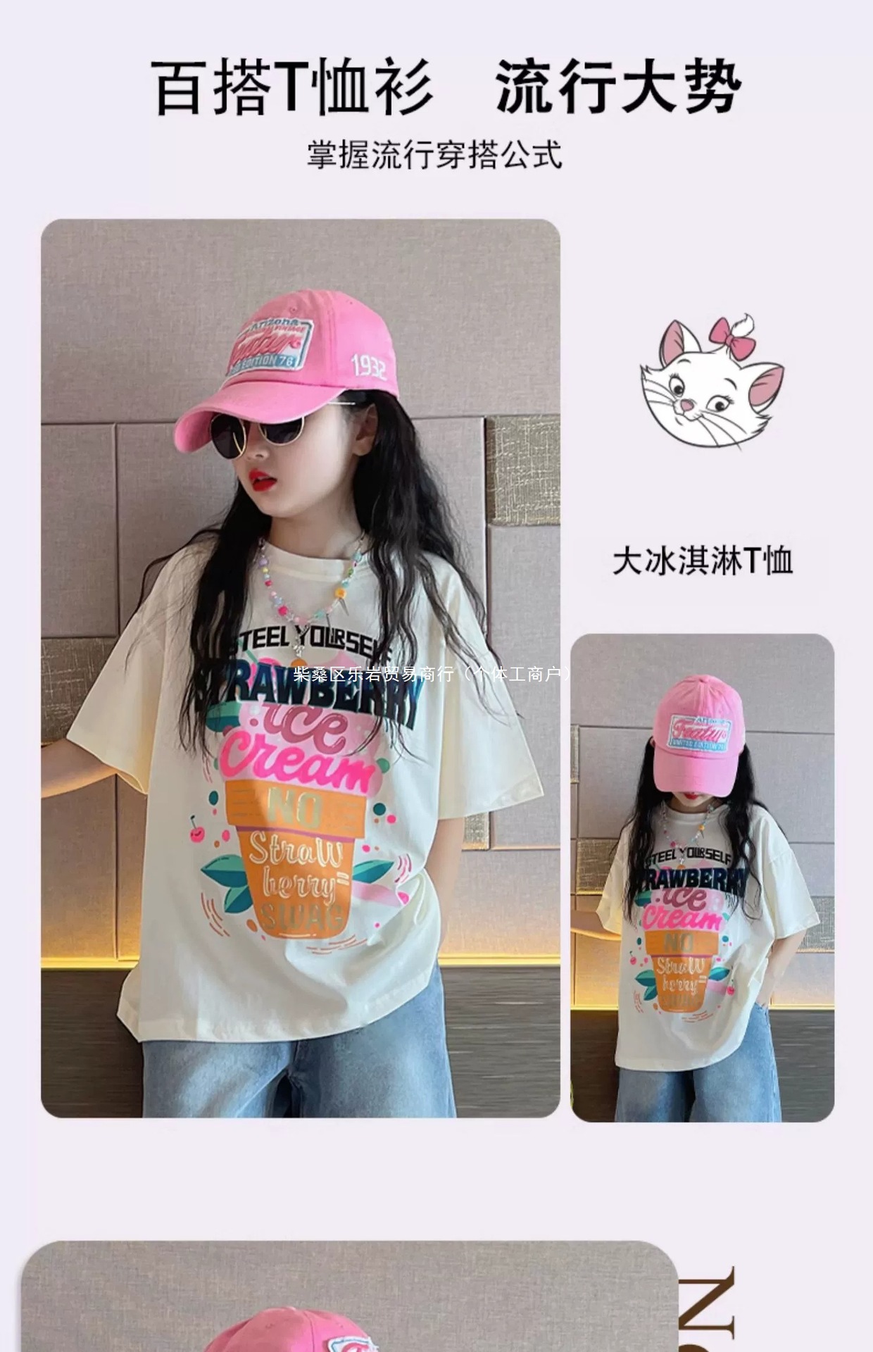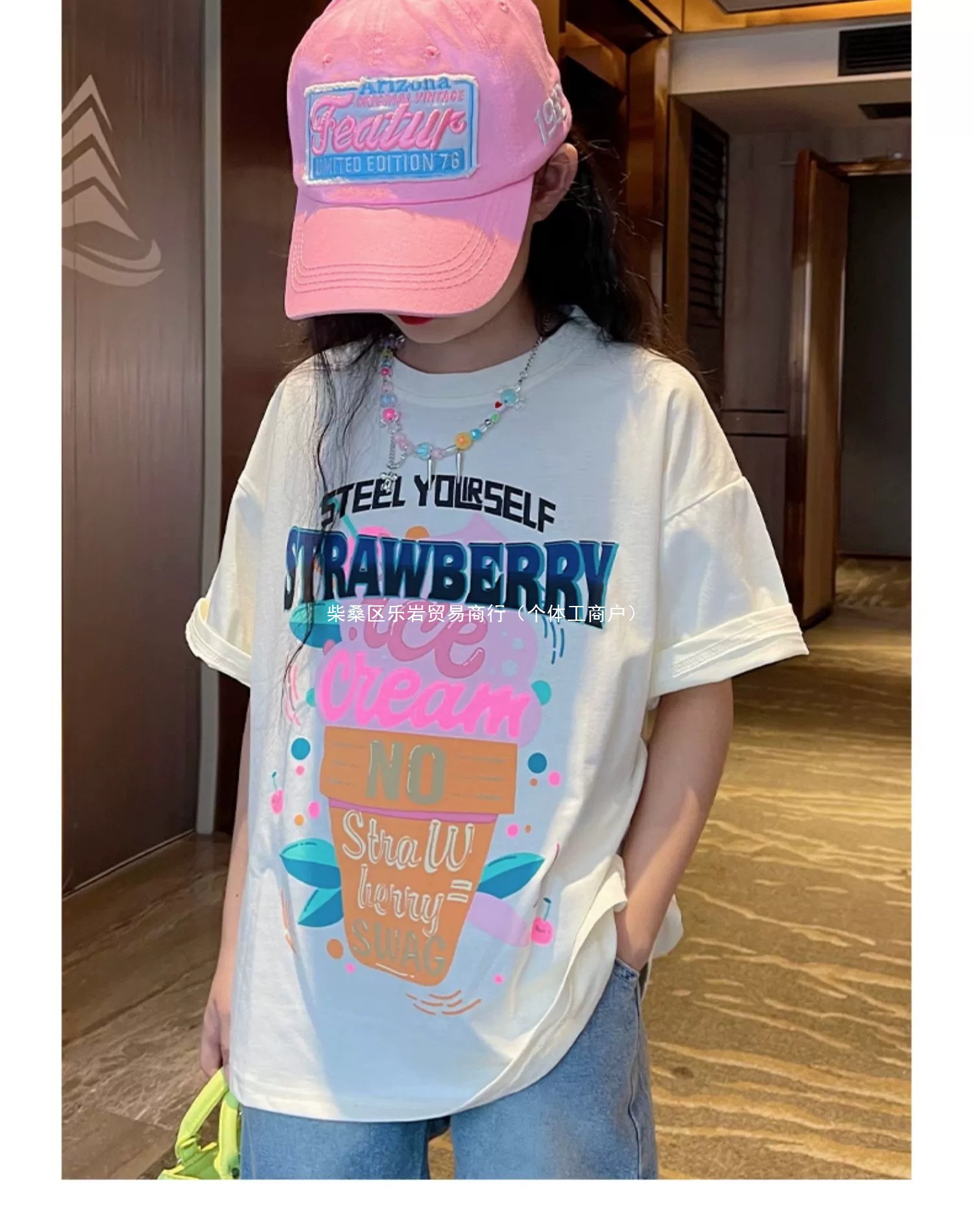반팔 소녀 여름 2025 새로운 여름 소녀 큰 어린이 최고 디자인 틈새 여성 여름 어린이 면화 도매스토어 가기
