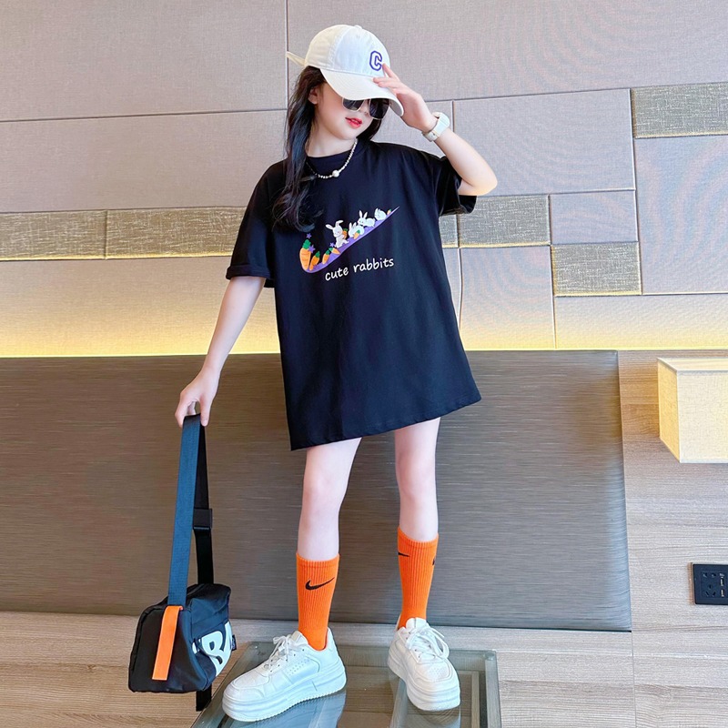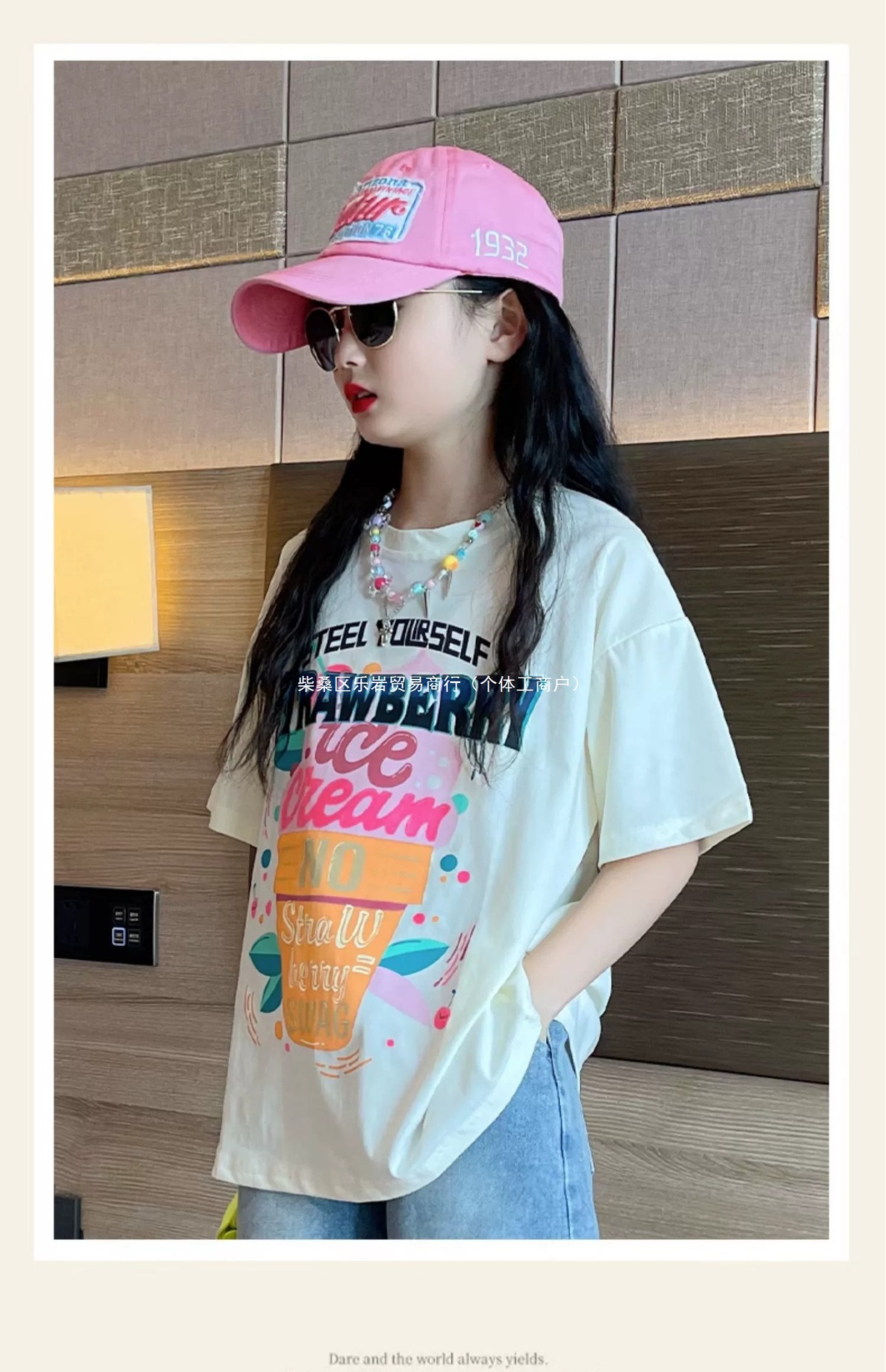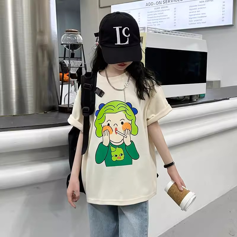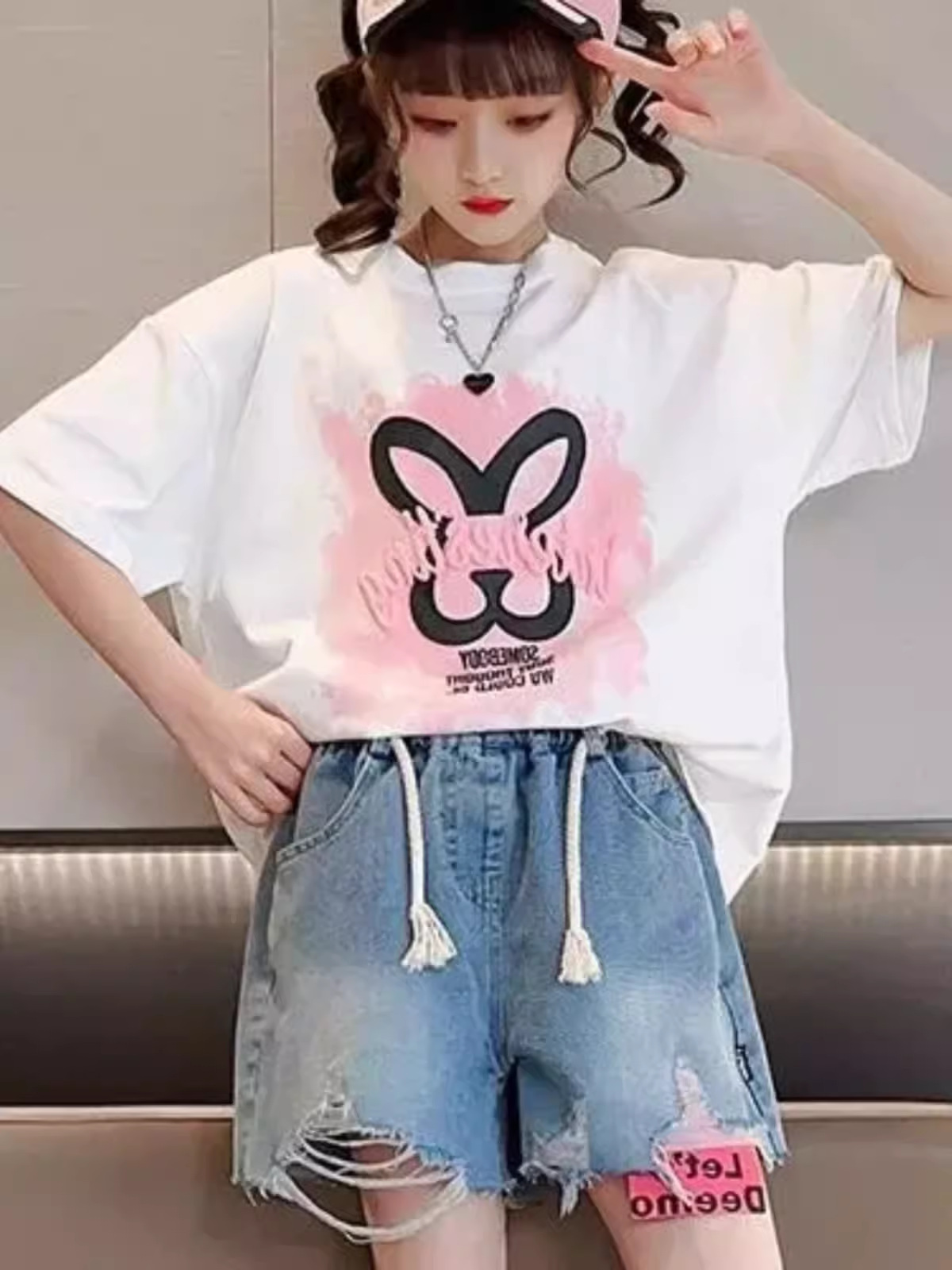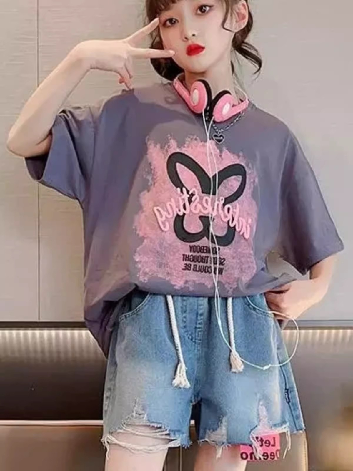 반팔 소녀 여름 2025 새로운 여름 소녀 큰 어린이 최고 디자인 틈새 여성 여름 어린이 면화 도매스토어 가기