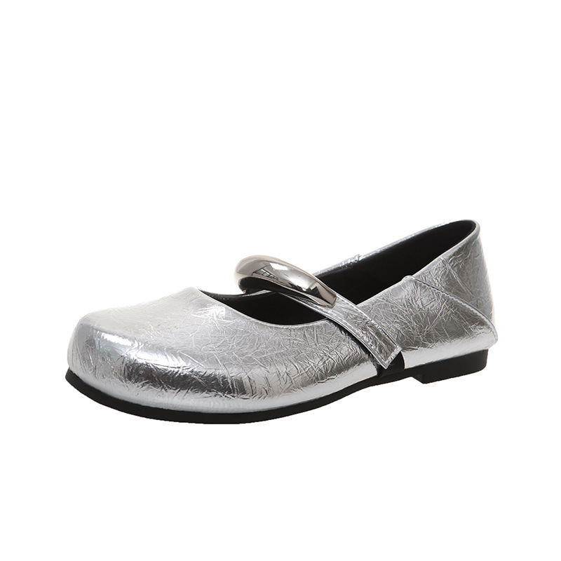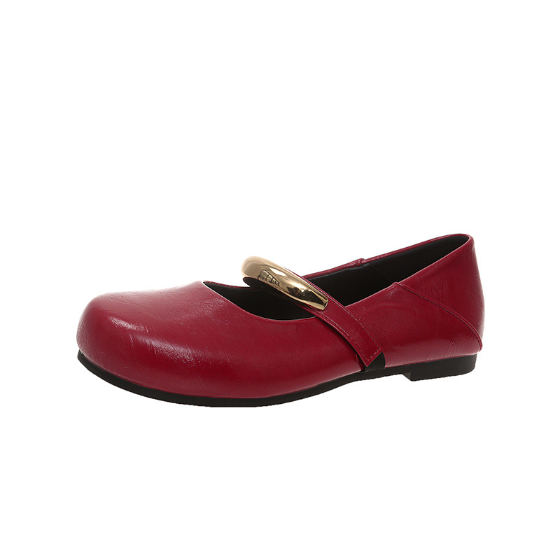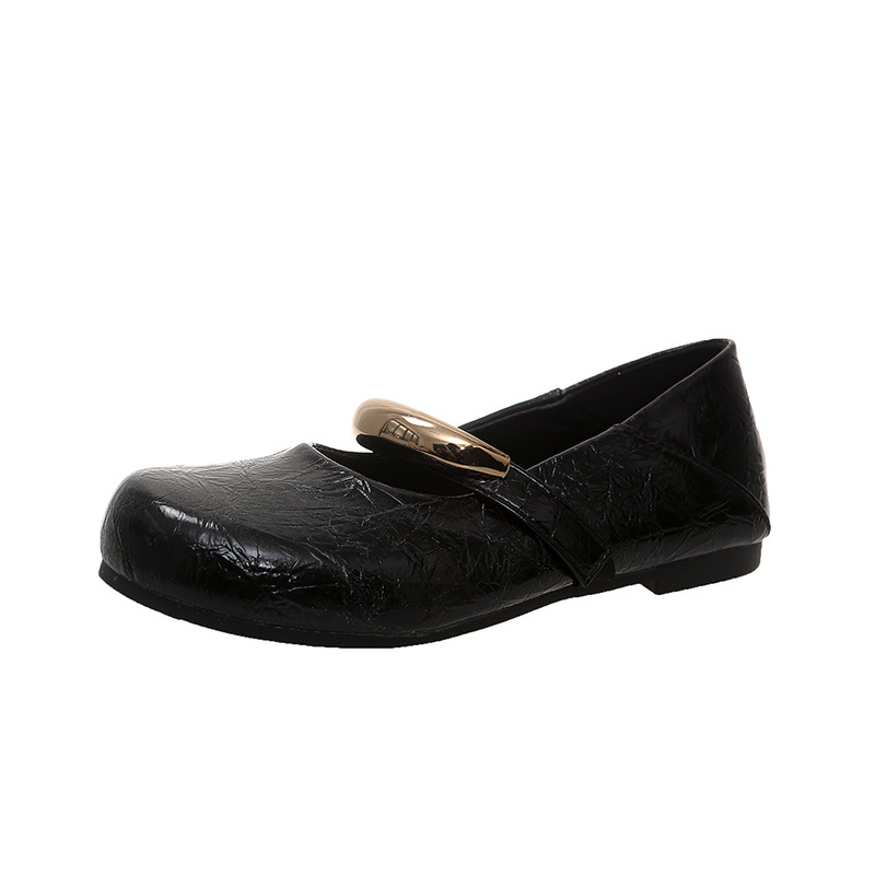 2025 봄과 가을 새로운 프랑스 플랫 로우 힐 얕은 입 신발 여성 복고풍 요정 스타일 여성 신발 스커트 메탈 버클