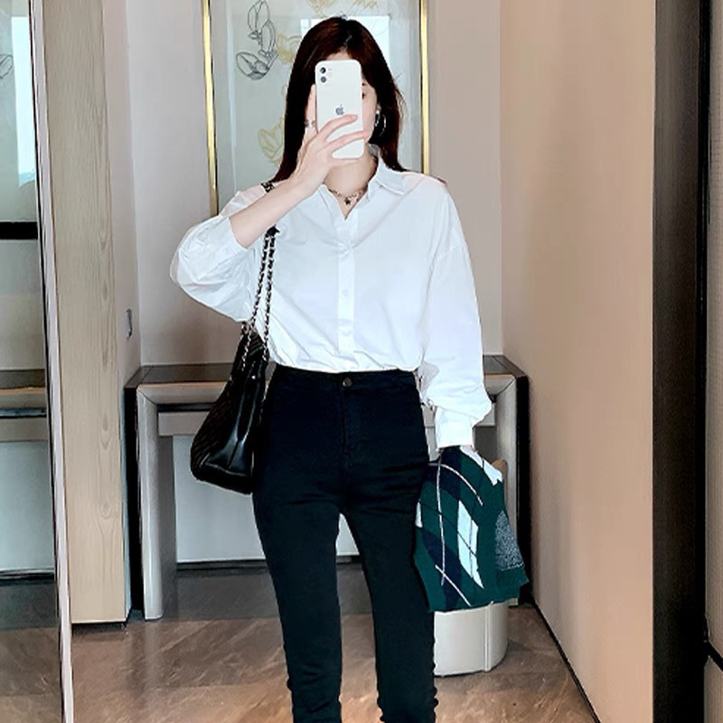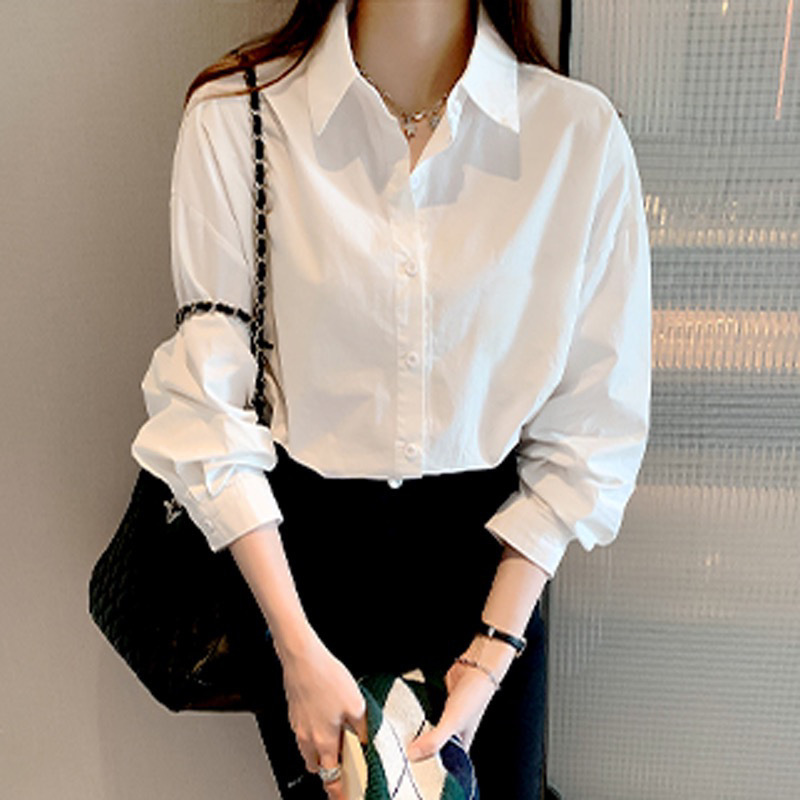 화이트 셔츠 여성 내복 2025 봄 새로운 한국 스타일 디자인 센스 니쉬 외국 스타일 탑 올 매치 긴 소매 셔츠스토어 가기