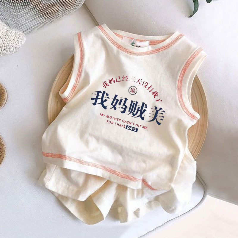 나는 이모 ~ 어린이 재미있는 텍스트 세트 여름 면화 소년과 소녀 아기 스포츠 조끼 반바지 두 도매