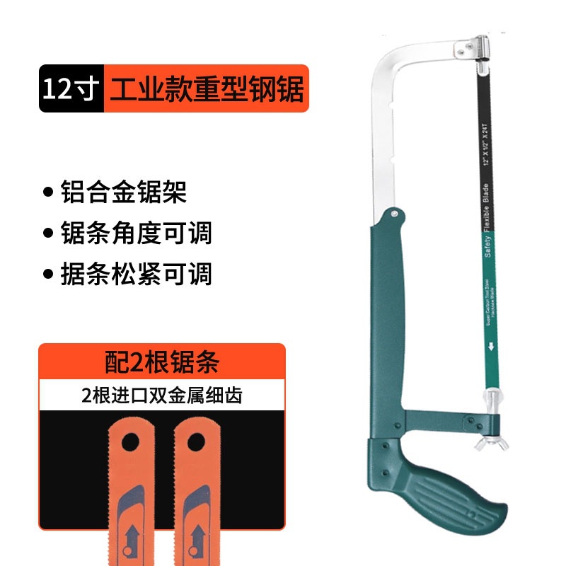 • 사각 튜브 헤비듀티 쇠톱 프레임(미세한 이빨 바이메탈 톱날 2개, 스테인레스 스틸 톱질 가능)