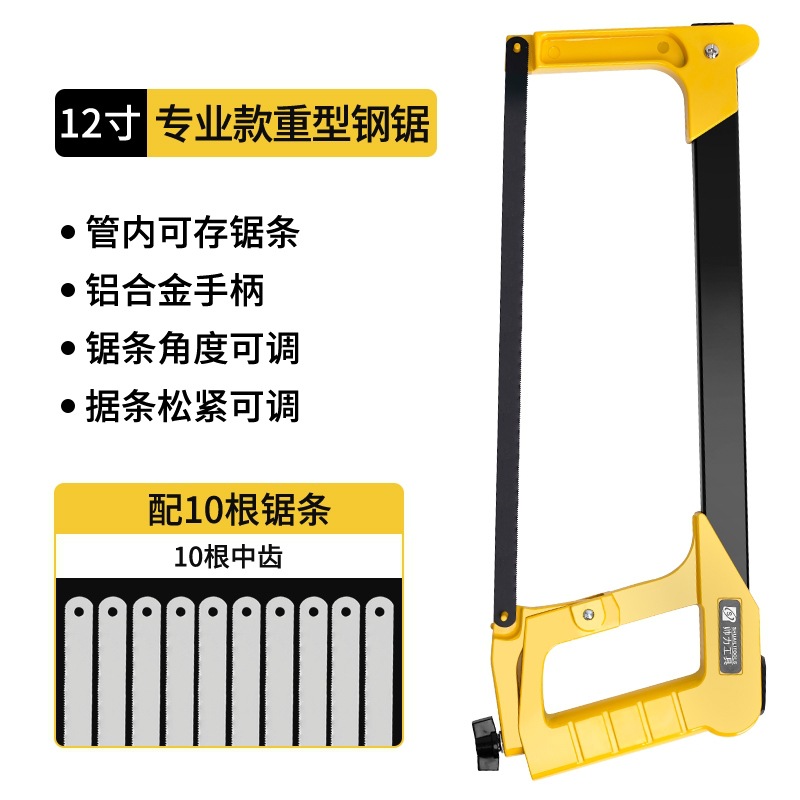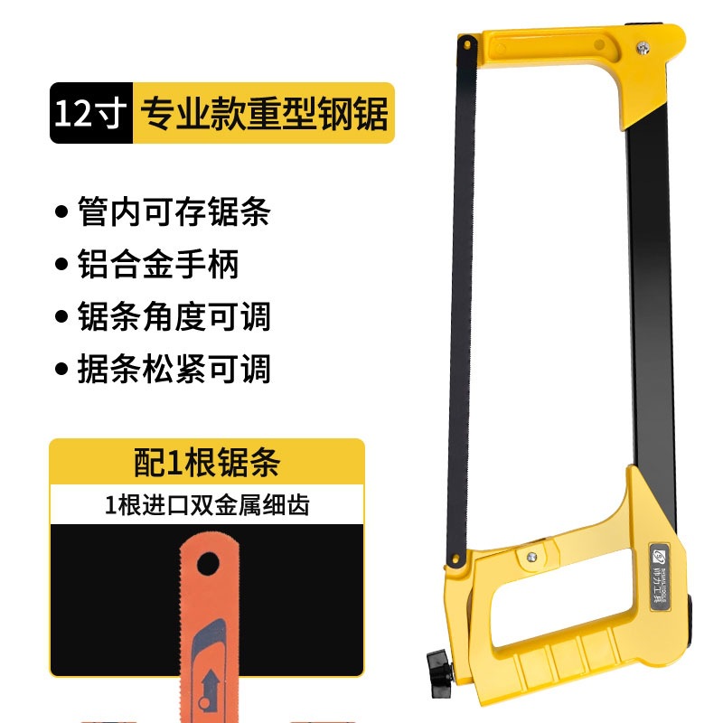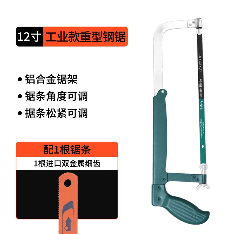• 사각 튜브 헤비듀티 쇠톱 프레임(미세한 이중 금속 톱날 1개, 스테인레스 스틸 절단 가능)