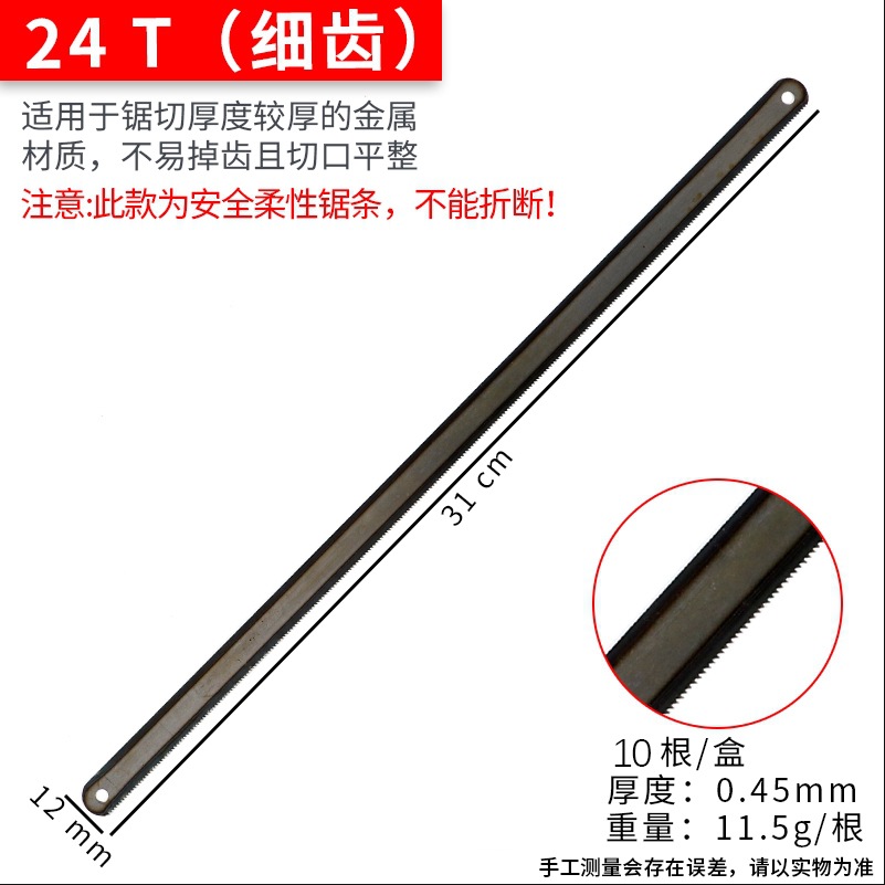 • 중간 톱니 쇠톱날 10개(톱니 18개, 일반 강철 및 주철 절단용)