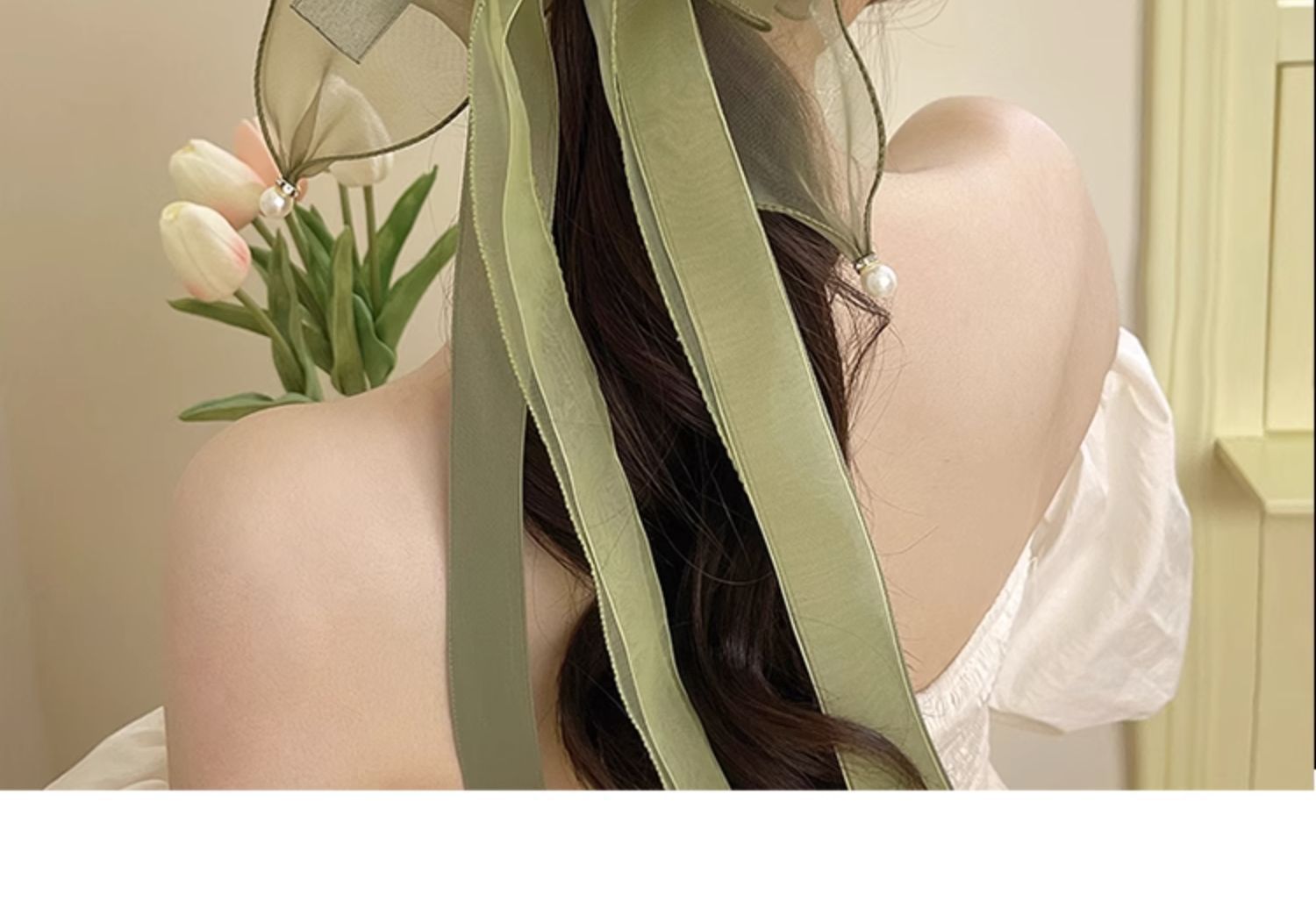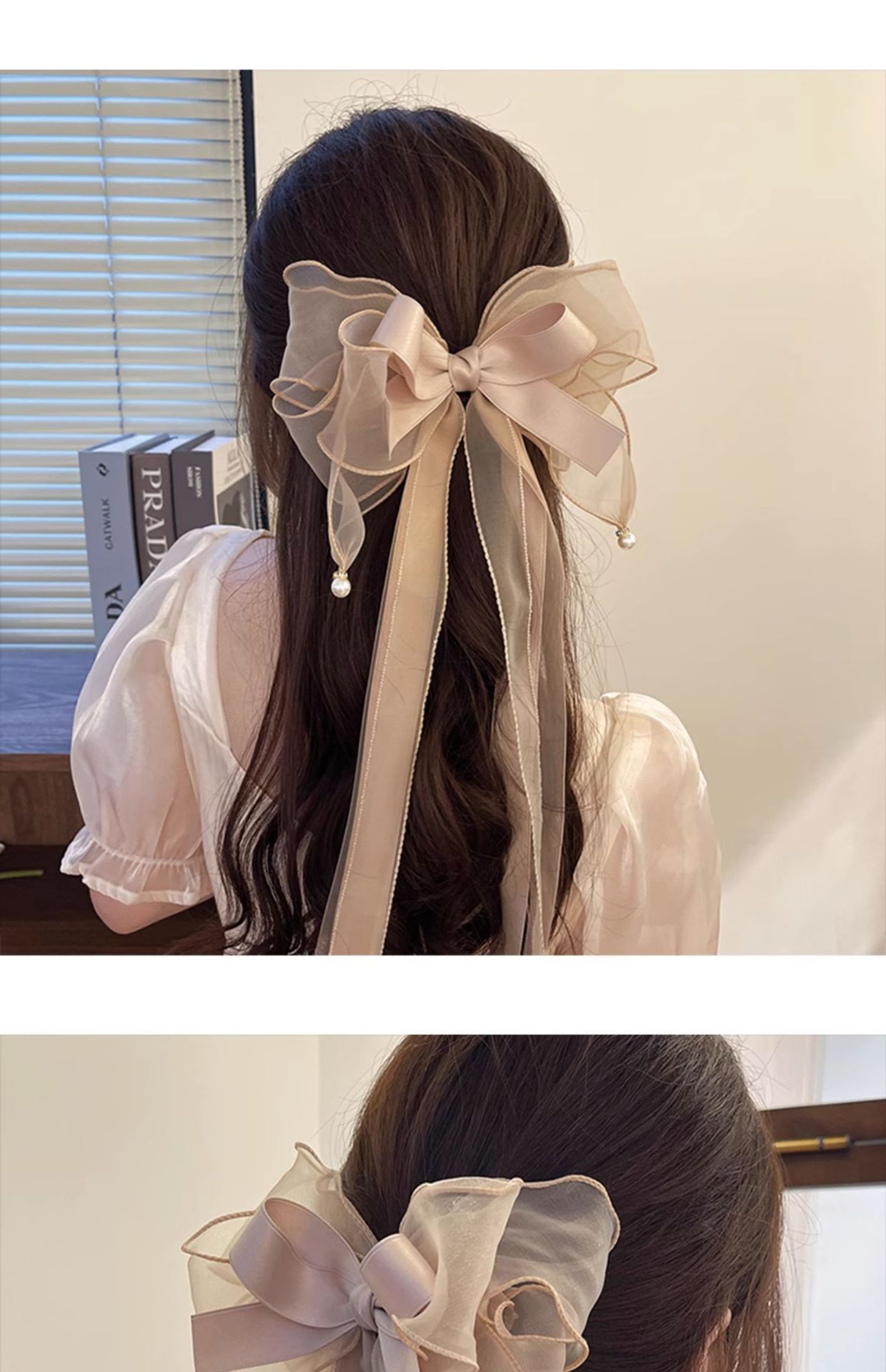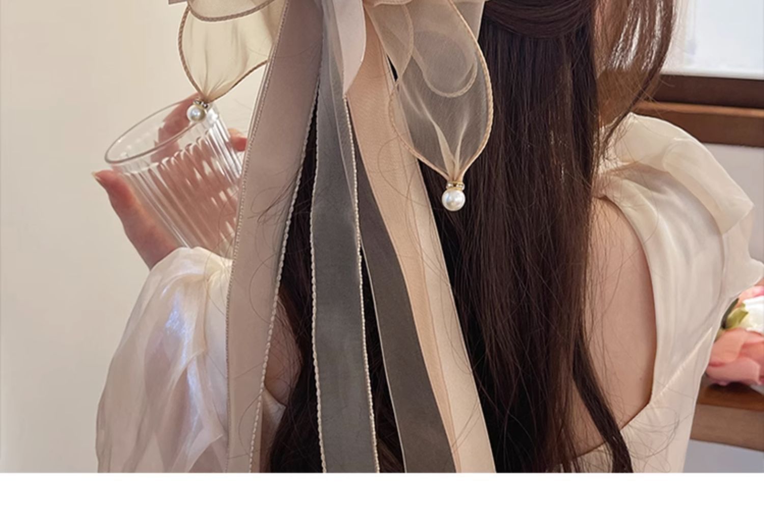• 1065 샴페인 리본 리본 헤어 클립